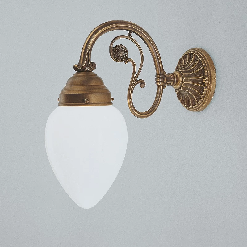 Zeigt sich das Gestell aus reinem Messing dieser Wandleuchte, welches veredelt mit mundgeblasenen Gläsern eine Zierde für Ihren klassischen Wohnbereich ist. Bis heute werden die Leuchten in der deutschen Landeshauptstadt von Hand gefertigt und stehen so für traditionsbewusste Qualität.