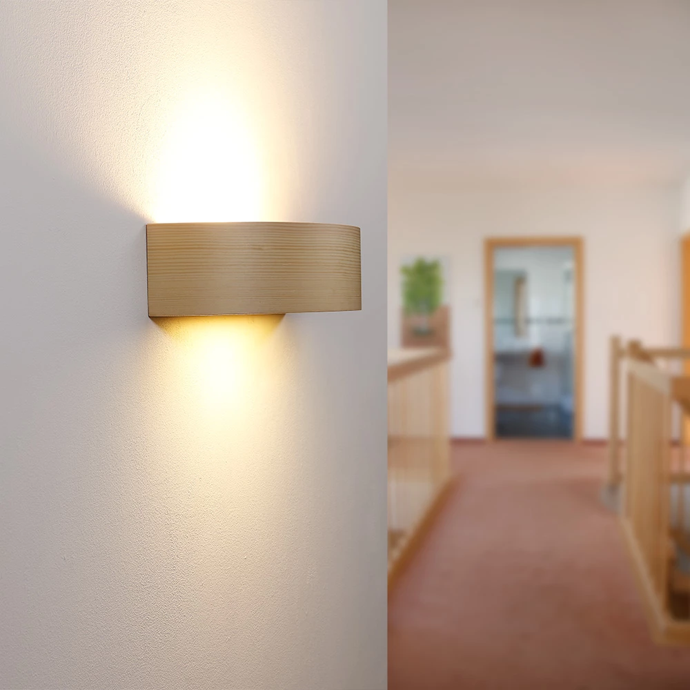 Wandlampe mit Holz sind zeitlose Lichtquellen, mit einem Lichtaustritt nach oben und unten, setzen sie zudem eine gelungene Lichtszene an die Wand.