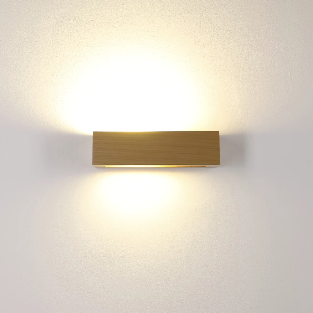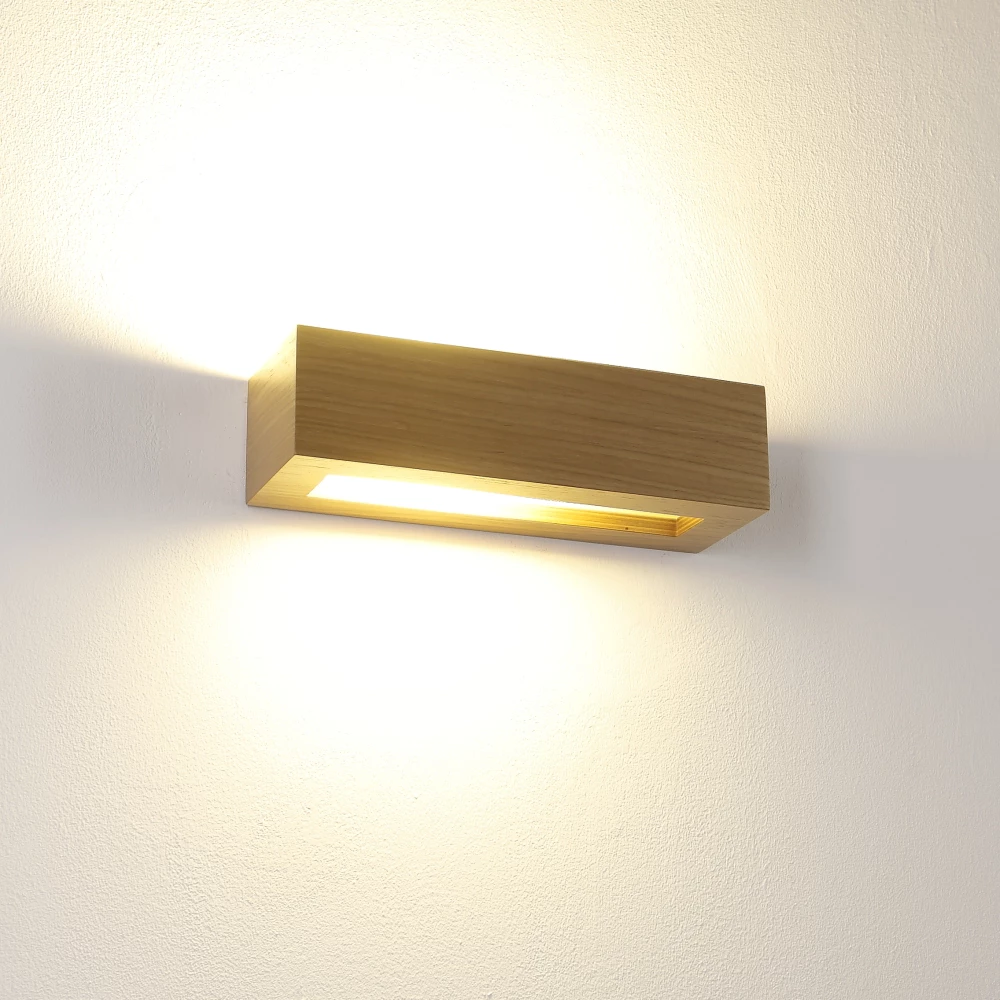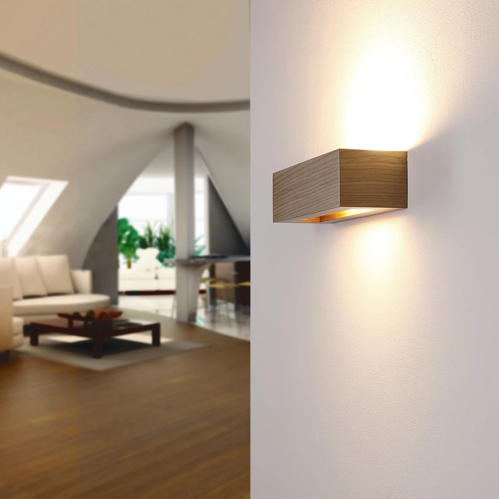 Die Wandleuchte Caspe30 in hellem Nußbaum Furnierholz passt wunderbar in den Raum, wenn Möbel oder Fußböden und Türen aus dem gleichen Holz gefertigt wurden, oder sich die Holzart als toller Kontrast an der Wand absetzt.