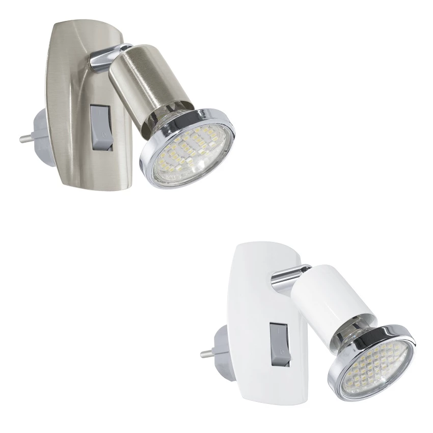 Moderne LED-Steckerleuchte für die Steckdose aus verchromtem Stahl mit einer 2,5 Watt LED-Platine.