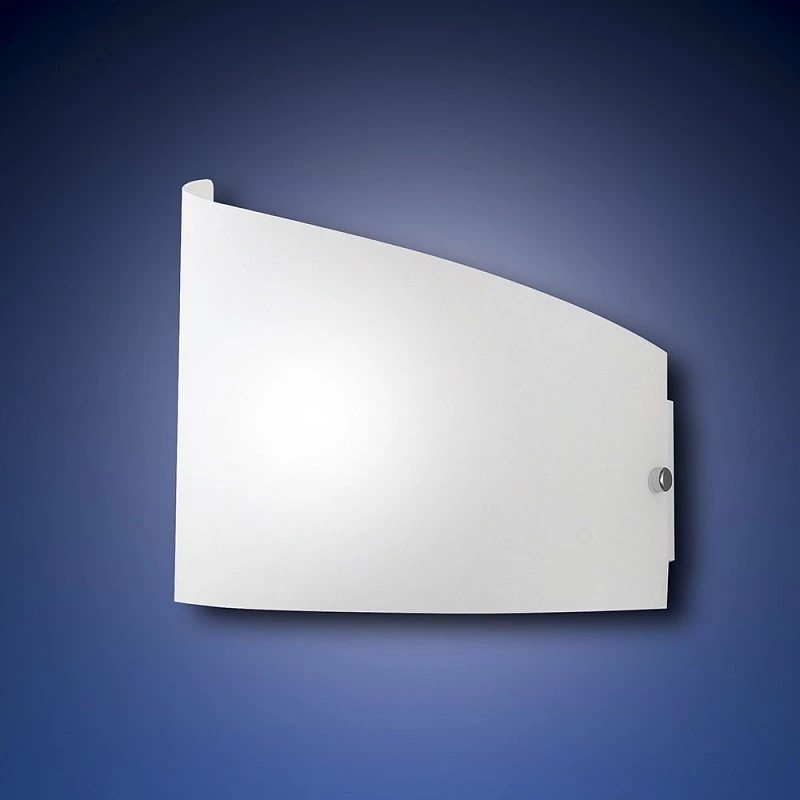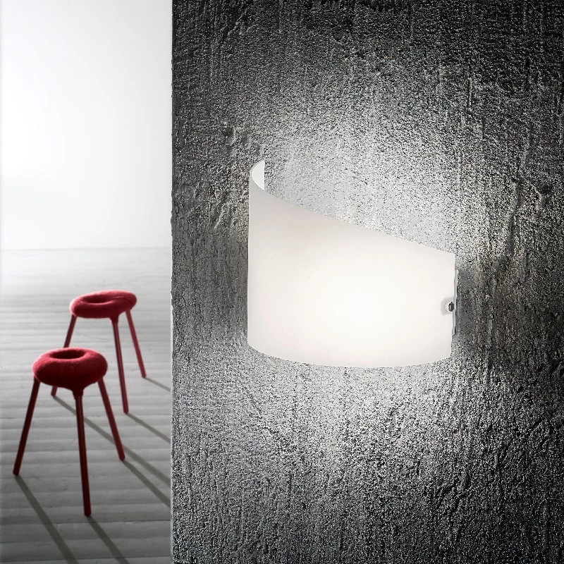 Gefertigt wurde die Wandleuchte aus einem weißen Metallgestell, an dem ein leicht gebogenes Glas in weiß montiert wurde. Aufgrund der schlichten und puristischen Gestaltung der Leuchte, kann diese in nahezu jeden Einrichtungsstil integriert werden. Die spezielle Formgebung ermöglicht, dass das Licht zusätzlich nach oben und nach unten abgegeben wird, dies unterstützt diegemütliche Stimmung, welche die Wandleuchte erzeugt.