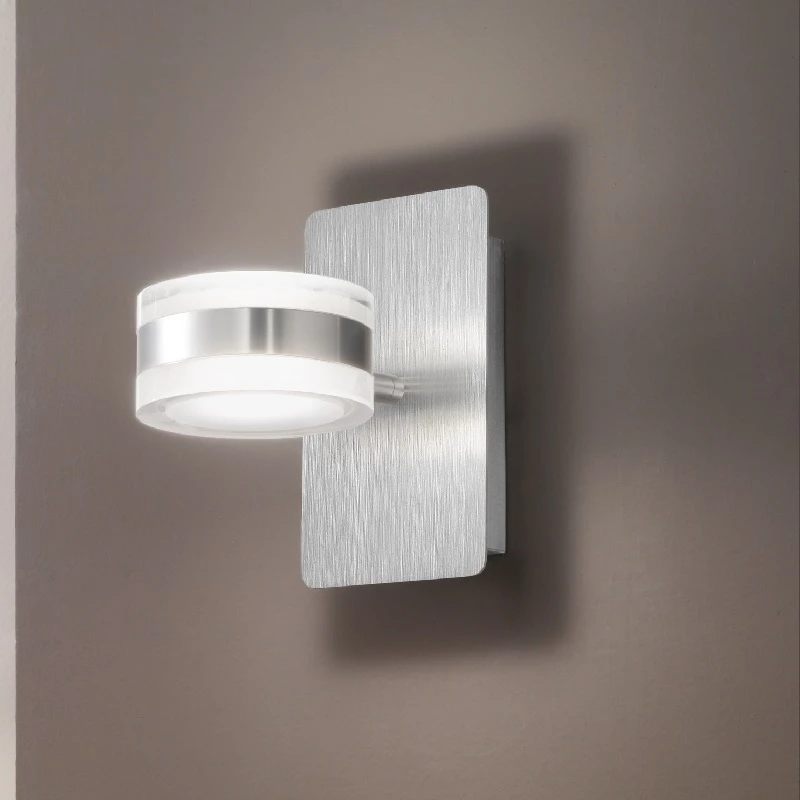 Eine stilvolle Wandleuchte aus Aluminium mit weißer Acrylglasabdeckung.