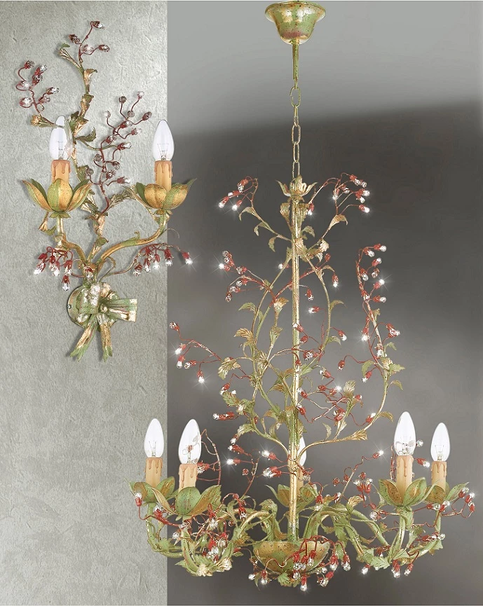 Primaballerina. Mit Anmut und Grazie verbindet diese 2-flammige Wandleuchte Florentiner Baukunst mit modernen Elementen. Ranken und Bleikristallrispen schlingen sich um den Leuchtenkörper, der aber nicht üppig und überladen, sondern zart und filigran wirkt. Die Farbgebung spiegelt die Farben italienischer Landschaften wieder, Grün, Rot und Gold, assoziieren Sonnenuntergänge und mediterranen Lifestyle mit südlichem Flair. Kunst, Kultur und Mode prägen die italienische Lebensart. Vor den Toren von Florenz verwirklicht dieser Hersteller diese Merkmale. Tradition wird hier noch großgeschrieben, aber auch neueste Trends und Fertigungsarten steht man aufgeschlossen gegenüber. So entstehen interessante Verbindungen von neu und alt, modern und antik, hochwertige Unikate mit vielen Gesichtern. Teilweise in echter Handarbeit hergestellt ist es eher Manufaktur als industrielle Serienproduktion. In Kombination mit dem passenden Kronleuchter (unter “passende Artikel”) gestalten Sie Ihre Räumlichkeiten luxuriös und edel, für eine unvergleichliche Aura der Eleganz und des guten Geschmacks.