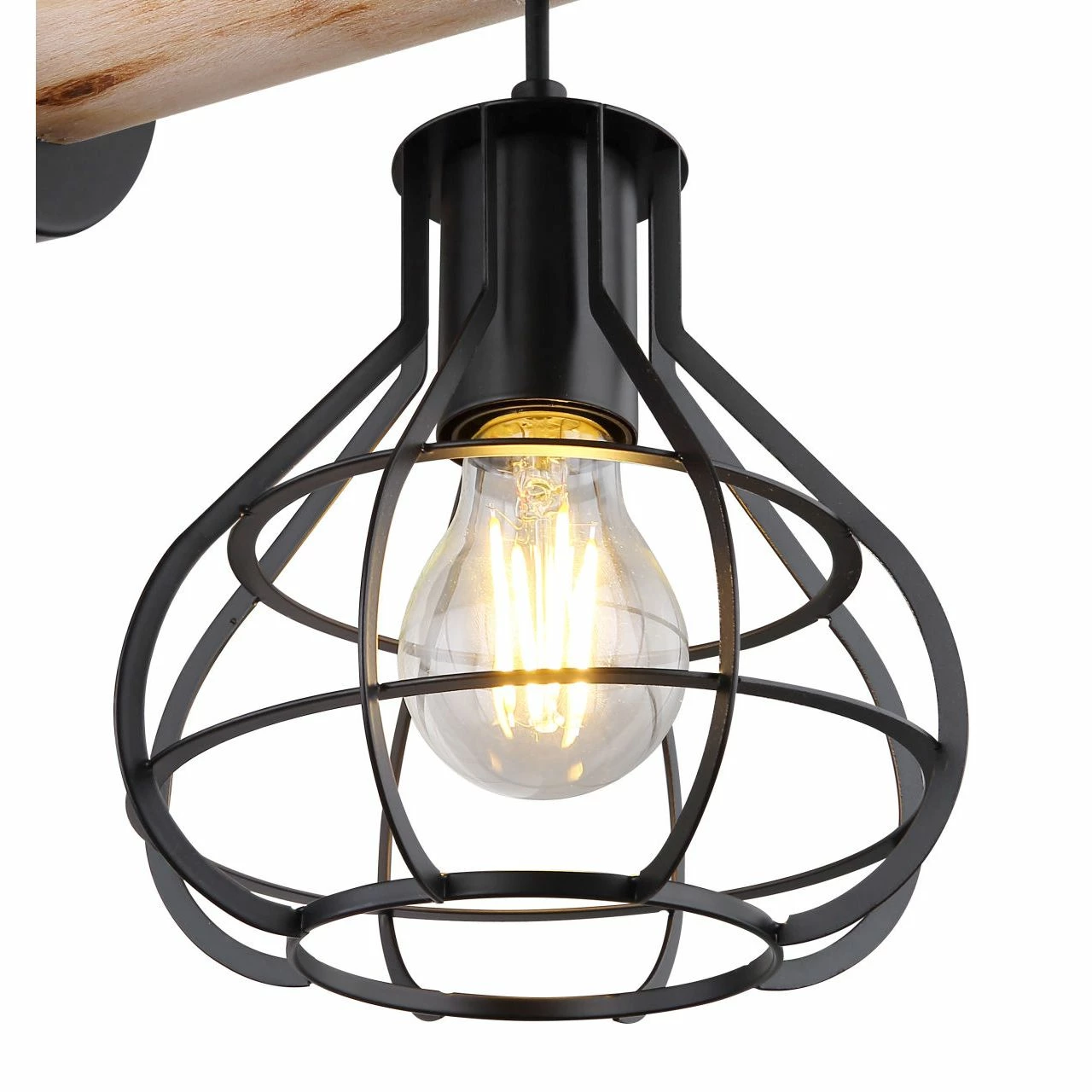 Trendig und dekorativ – diese Wandleuchte besticht mit ihrem schwarz matten Metallstäben und überzeugt mit ihrem modernen Design. Der Blick auf das einzusetzende E27 Leuchtmittel liegt frei. Dies ermöglicht alternativ auf ein dekoratives Leuchtmittel mit einer maximalen Leistung von 60 Watt zurückzugreifen. Mit einer LED Glühbirne sorgt man für noch mehr Nachhaltigkeit. Der Käfigschirm befestigt auf einem Holzstück hat einen Durchmesser von 25cm und verspricht somit eine einzigartige Lichtatmosphäre. Hingucker garantiert!