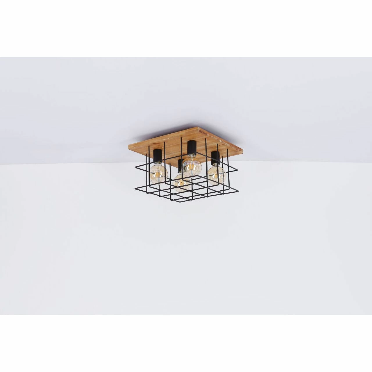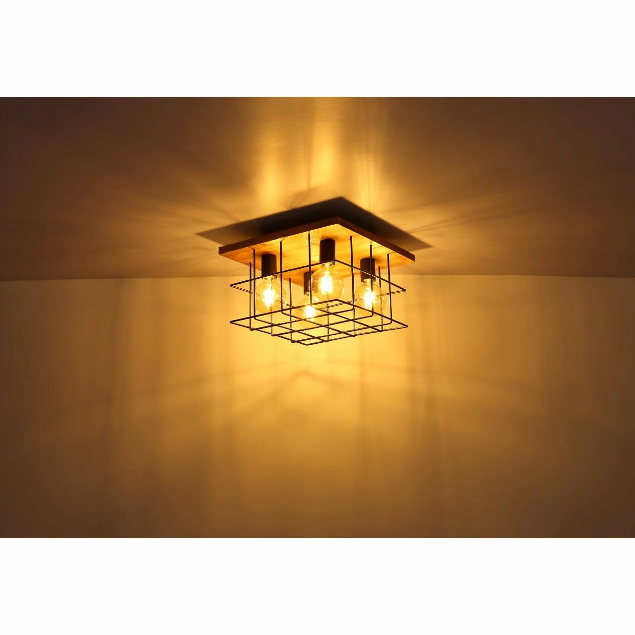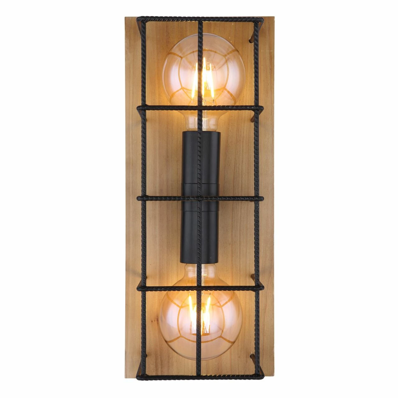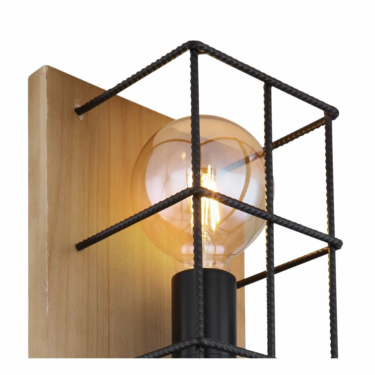 Wandleuchte Holz braun, Metall schwarz, auf-abwärts, Käfig aus Betonstahl-Gitter, BxH:182×430, AL:165, exkl. 2xE27 60W 230V