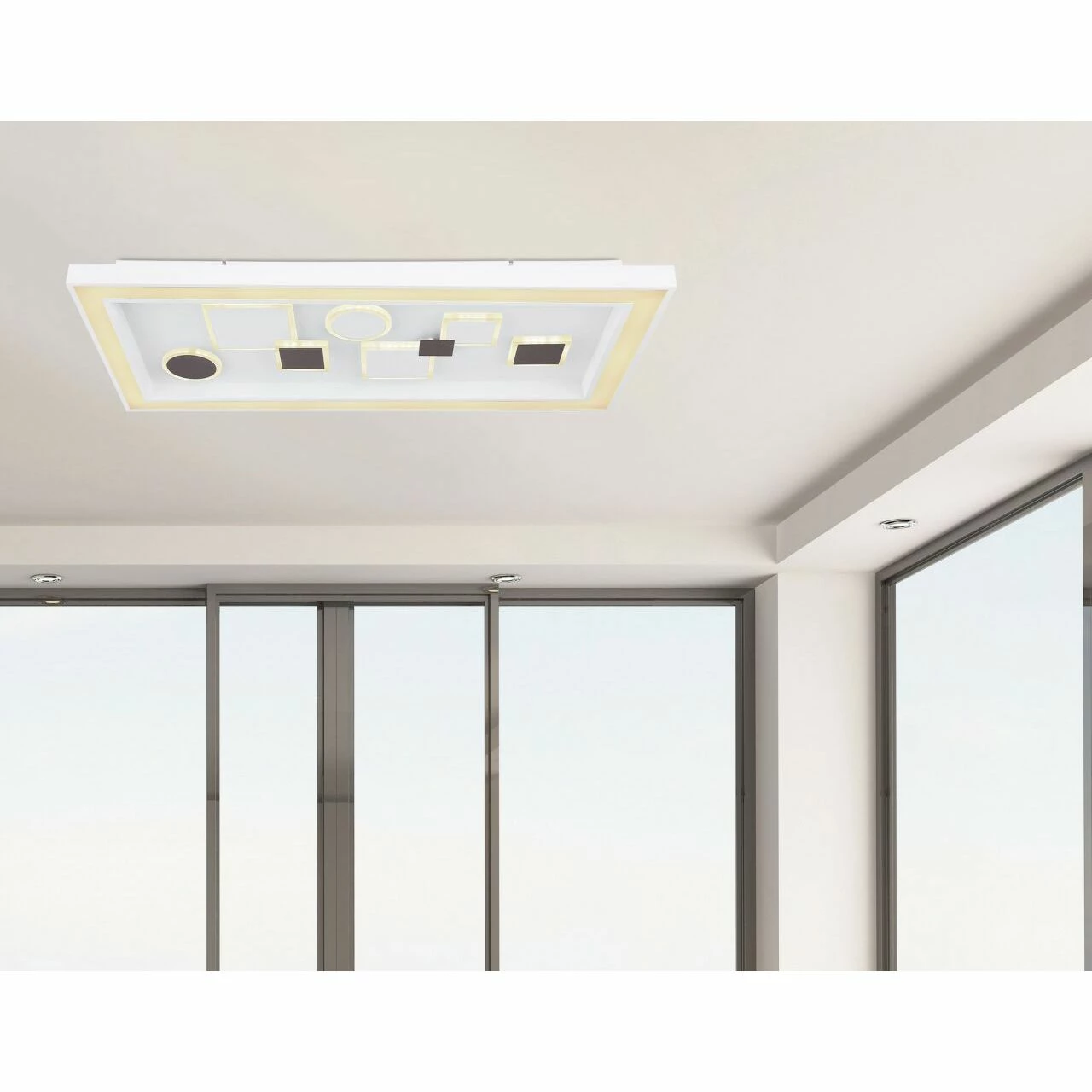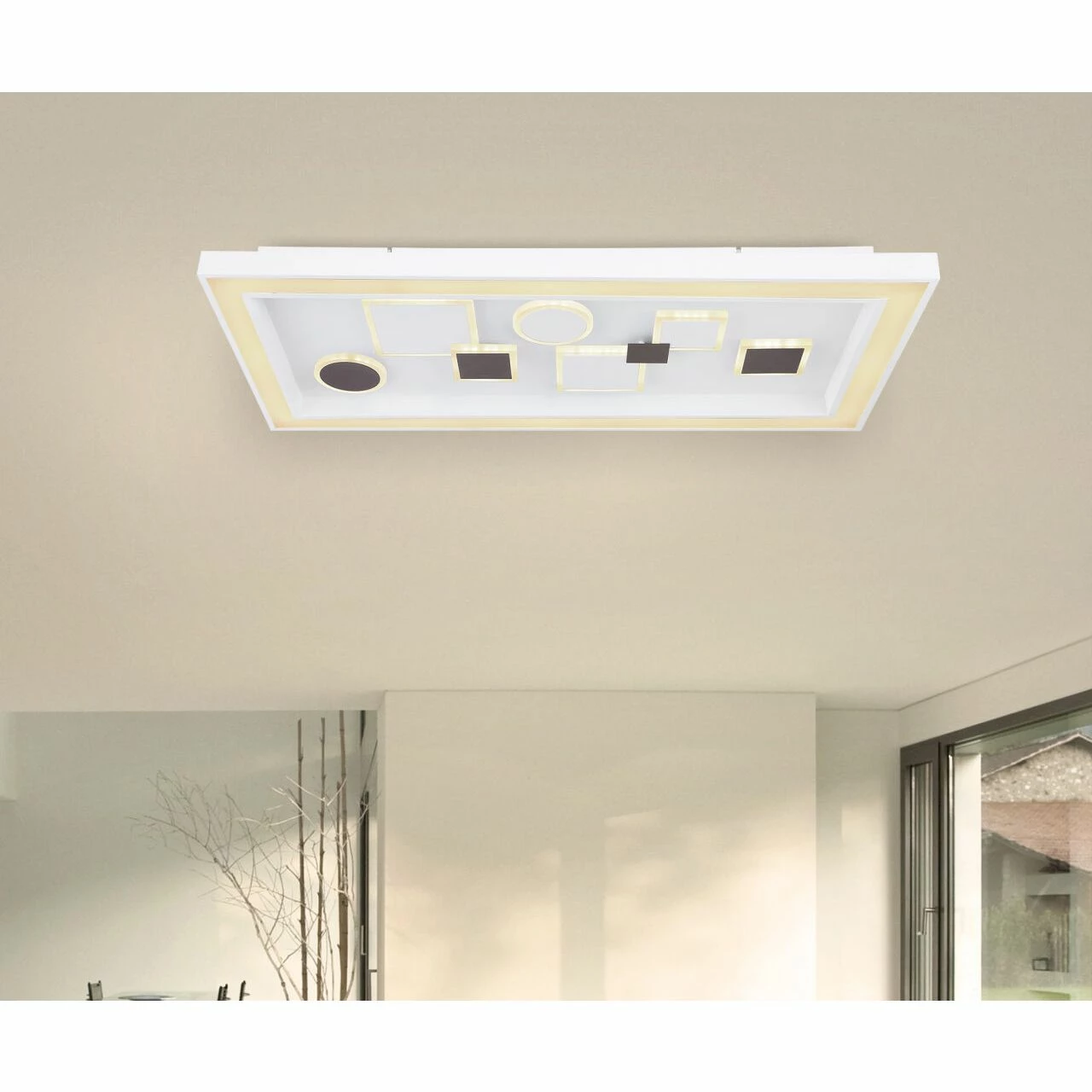 Die LED Deckenleuchte aus der Serie eignet sich perfekt als Beleuchtung für ihr Wohn- Ess- und auch Schlafzimmer. Die Lampe besteht aus opal weißem Acryl und hat eine Größe von LxBxH:800×400×70 mm. besitzt eine nicht austauschbare LED-Beleuchtung (55 Watt) und hat eine Lichtleistung 2500 Lumen. Die Leuchte hat eine Memoryfunktion sowie eine Fernbedienung. Sie können diese Deckenleuchte über ihren Wandschalter in 3 Stufen schalten (CCT 3.000–6.000). Sobald Sie 100% Licht (voll) erhalten, drücken Sie den Wandschalter erneut, dann erhalten Sie 60% Licht. Beim dritten Mal erhalten Sie ein Stimmungslicht. Dies schafft zusätzliche Atmosphäre im Raum. Dank des geringen Stromverbrauchs, ist diese LED Lampe energiesparend und somit auch sehr umweltfreundlich. Um das Gesamtbild in ihrem Eigenheim zu komplettieren, empfehlen wir weitere Modelle aus dieser Serie zu verwenden.