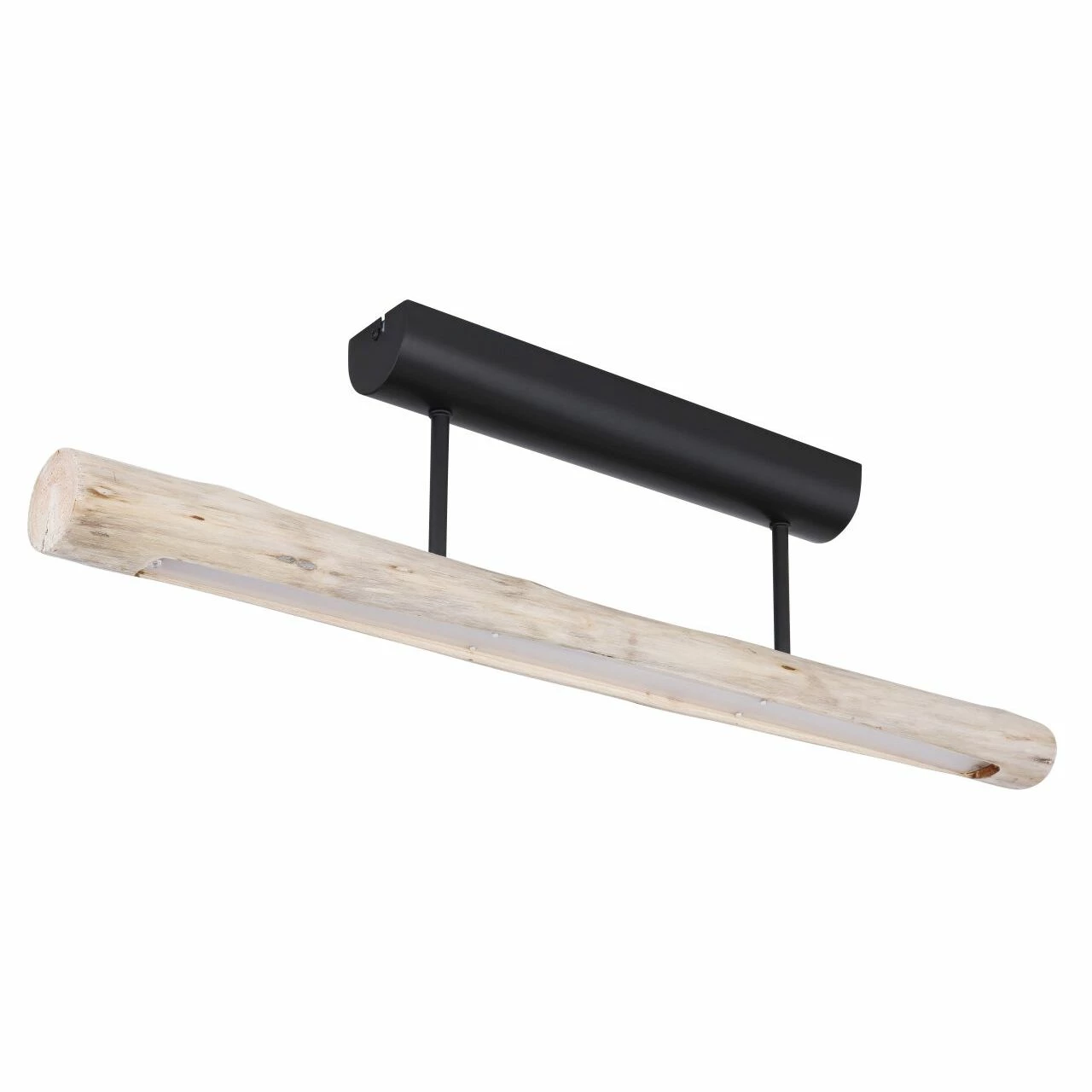 Deckenleuchte Metall schwarz matt, Holz natur, 3 Lichtstufen über Wandschalter, LxBxH:800×70×200, inkl. 1xLED 15W 230V, 2250lm Source, 1062lm Output, 3000K
