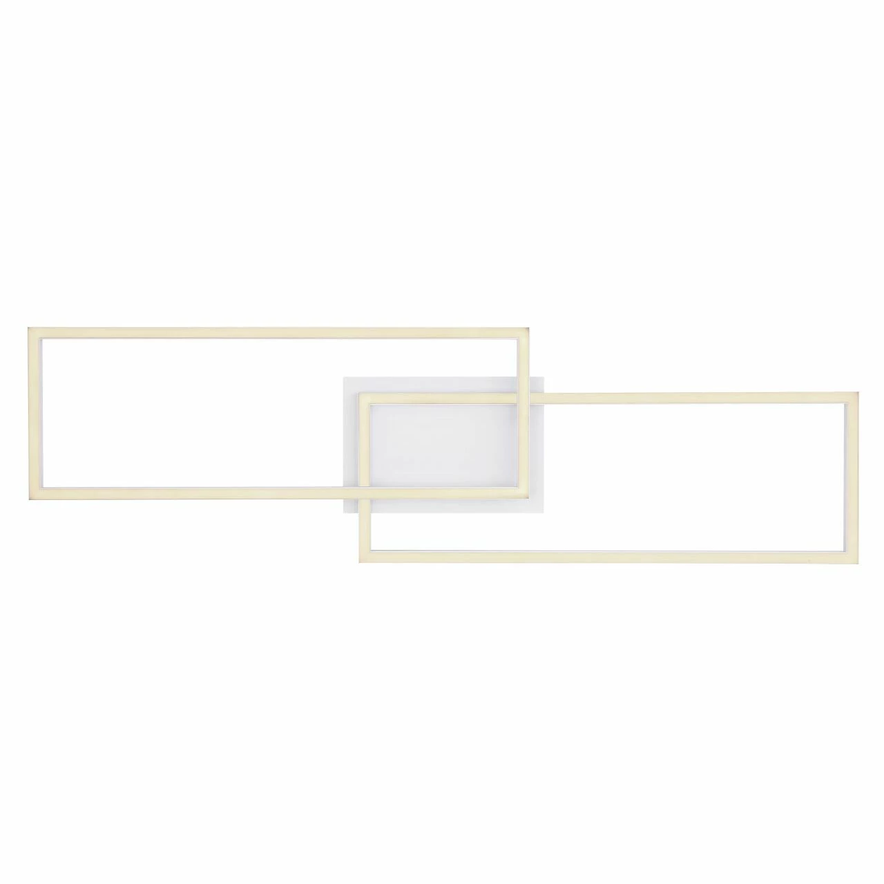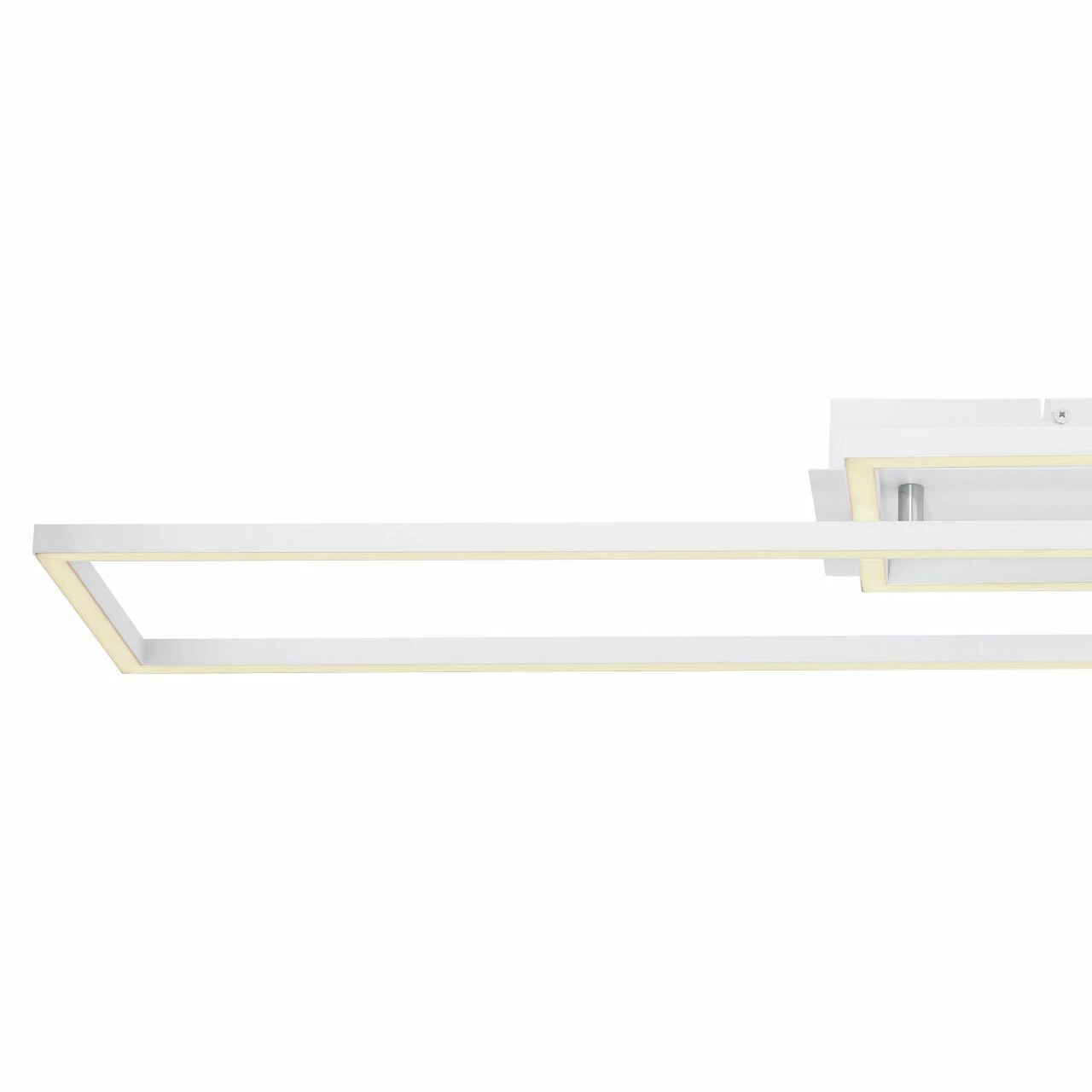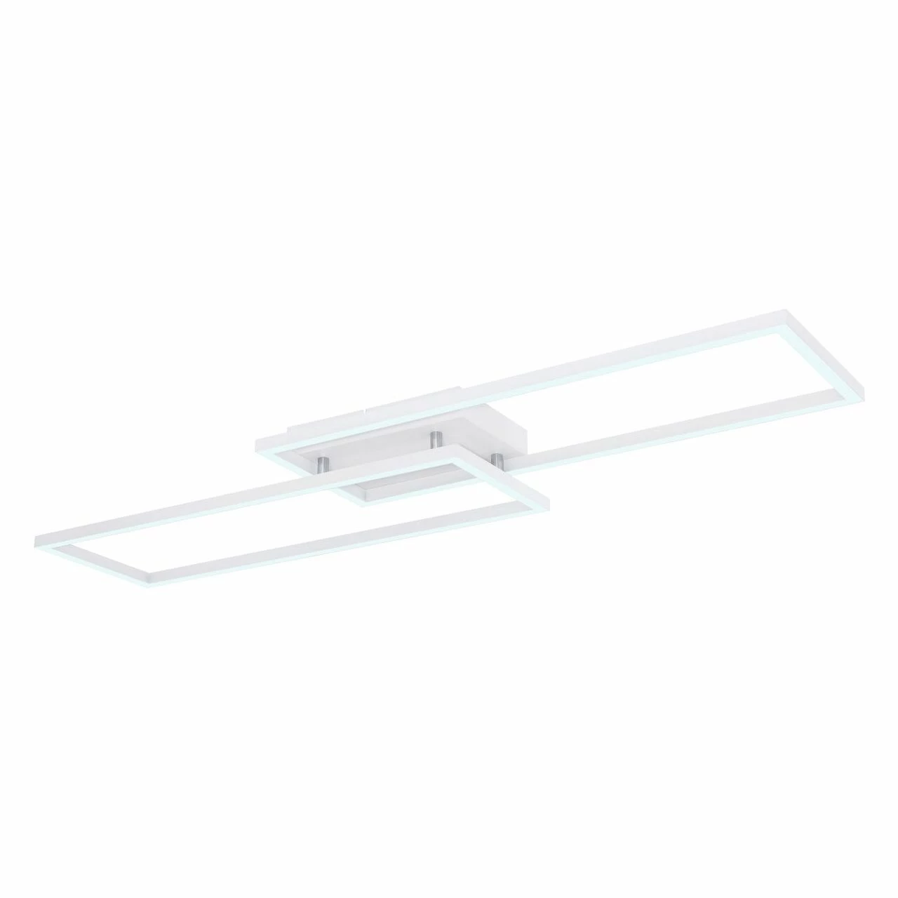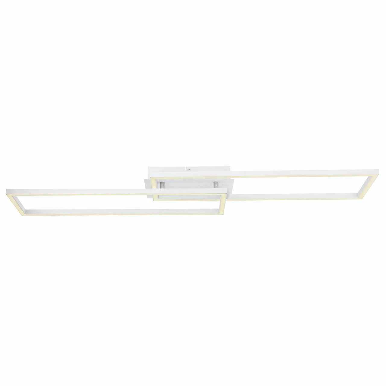 Diese moderne Deckenlampe aus der-Serie (101×29 cm) eignet sich wunderbar für Ihre Innenräume. Sie verfügt über zwei rechteckige Rahmen aus weißem Metall, die formschön überkreuzt angeordnet und mit opalenem Kunststoff versehen sind. Dieser bedeckt die inkludierten LEDs, die 2200 Lumen starkes Licht leisten, wobei die Lichtfarbe in drei Stufen (2700, 4000 und 6000 Kelvin) eingestellt werden kann. Durch weitere Modelle der gleichen Serie können Sie das Gesamtbild in Ihren vier Wänden komplettieren und für ein stilvolles Ambiente sorgen.