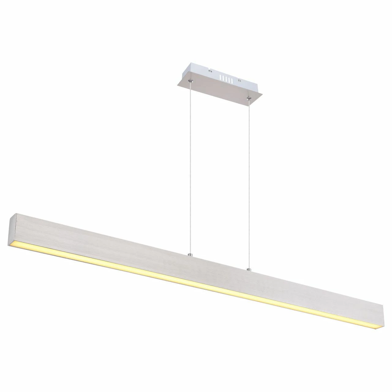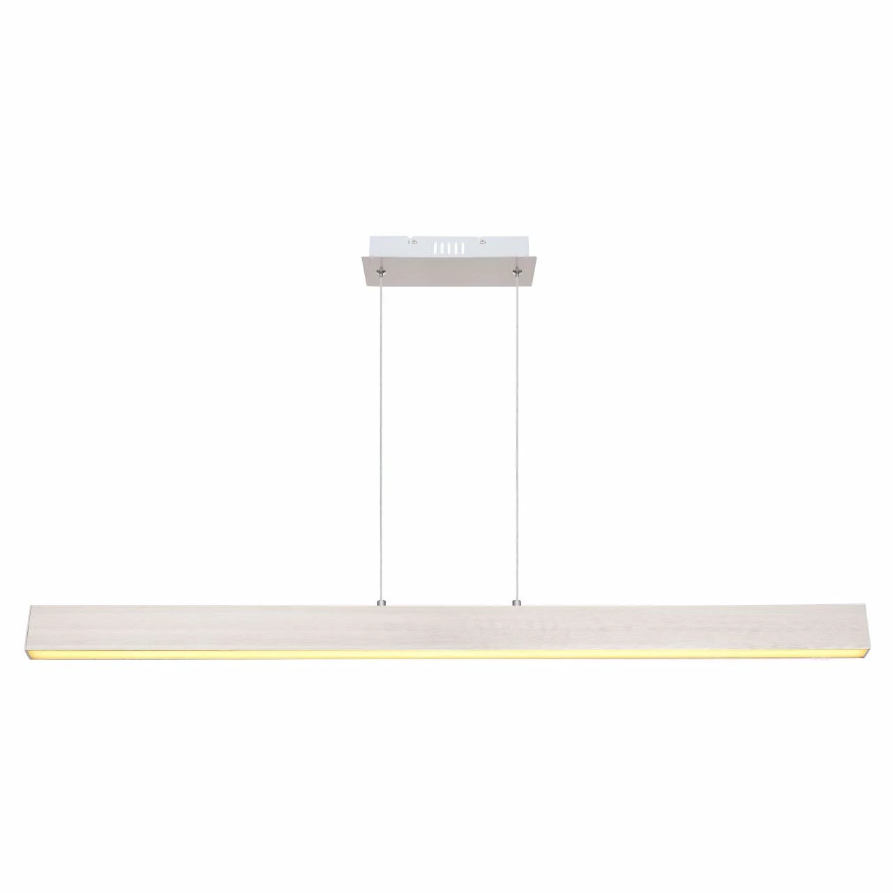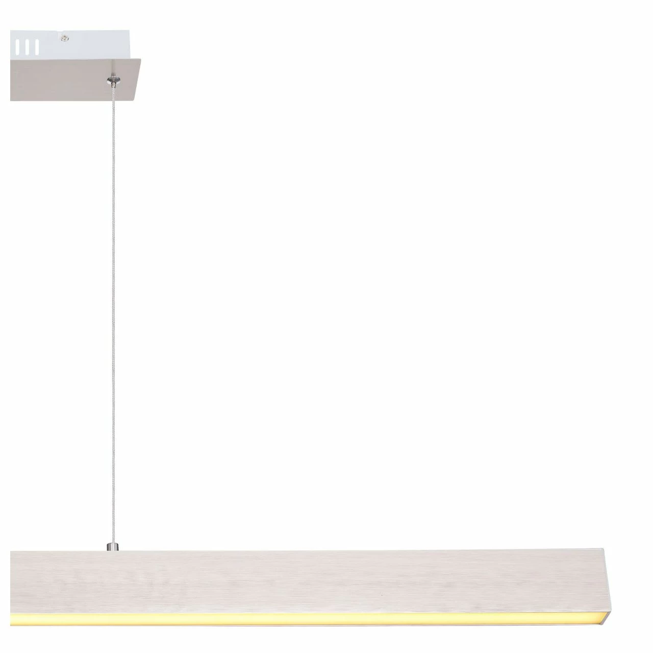 Die Hängelampe aus Metall mit einem Schirm aus Kunststoff in Opal weiß taucht Ihren Wohn- oder Essbereich durch das inkludierte Leuchtmitteln (3000 Kelvin) in ein gemütliches, warmweißes Licht. Da die balkenförmige Hängeleuchte über den Wandschalter in 3 Stufen dimmbar ist, können Sie die Raumatmosphäre nach Ihrem Empfinden anpassen. Die Hängelampe hat eine Memory Funktion und merkt sich den letzten eingestellten Wert. Der 8 cm schmale Balken wird durch die Länge von 121 cm zum Blickfang über Ihrem Ess- oder Wohnzimmertisch.