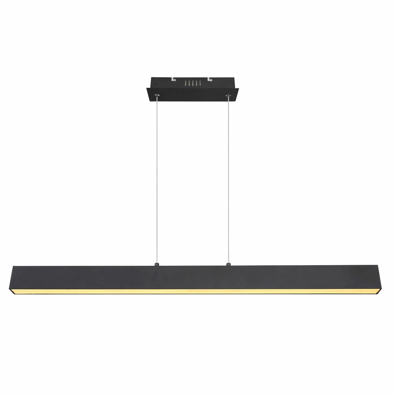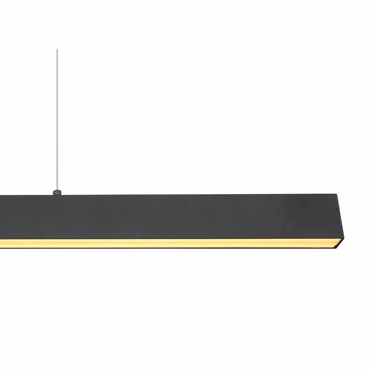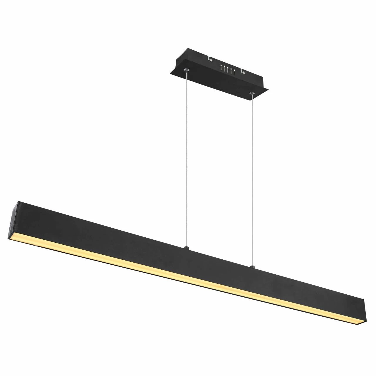 Die matt schwarze Hängelampe aus Metall mit einem Schirm aus Kunststoff in opalweiß taucht Ihren Wohn- oder Essbereich durch das inkludierte Leuchtmitteln (3000 Kelvin) in ein gemütliches, warmweißes Licht. Da die balkenförmige Hängeleuchte über den Wandschalter in 3 Stufen dimmbar ist, können Sie die Raumatmosphäre nach Ihrem Empfinden anpassen. Die Hängelampe hat eine Memory Funktion und merkt sich den letzten eingestellten Wert. Der 8 cm schmale Balken wird durch die Länge von 121 cm zum Blickfang über Ihrem Ess- oder Wohnzimmertisch.