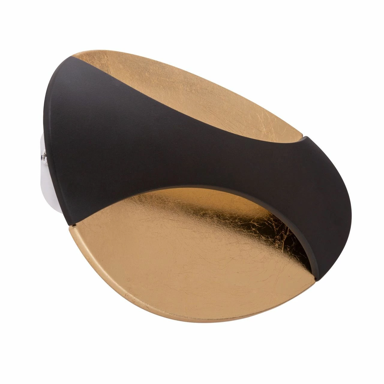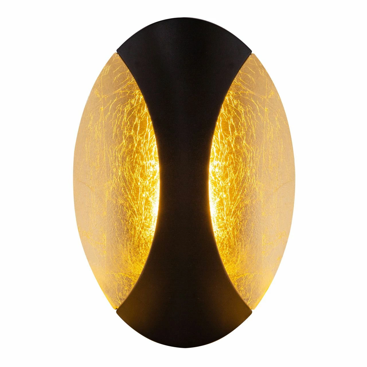 Die ovale Wandleuchte überzeugt durch ihr schwarz-blattgoldenes Metalldesign. Durch die Rundungen gibt diese Innenleuchte schöne Lichteffekte. Das inkludierte 6 Watt LED Leuchtmittel spendet 230 Lumen starkes Licht bei einer angenehm warmen Lichtfarbe von 3000 Kelvin.
