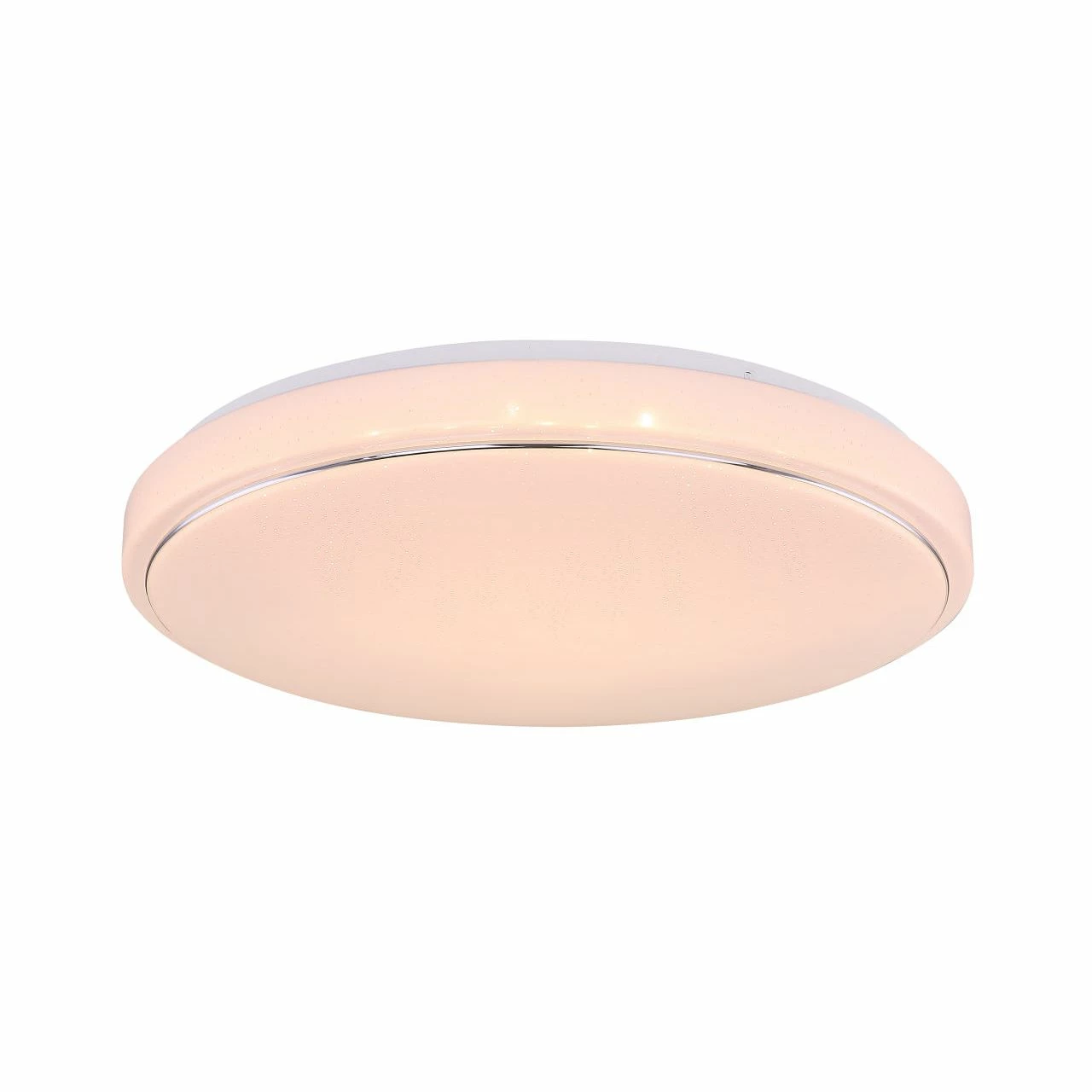 Die runde (49 cm) Deckenlampe punktet mit Ihrer Funktionalität. Hergestellt aus weißem Metall und opalem Kunststoff mit Sparkle-Optik verfügt diese Deckenleuchte mit Chromringen über die Möglichkeit die Lichtfarbe in warmweiß (3000 Kelvin), neutralweiß (4000 Kelvin) und kaltweiß (6000 Kelvin) mittels Wandschalter zu verändern. Diese Lampe mit inkludierten 32 Watt LED Leuchtmittel leistet bis zu 3300 Lumen starkes Licht. Diese Lampe ist universell in Ihrem Wohnraum einsetzbar. Durch weitere Modelle dieser Serie können Sie Ihren Wohnraum komplettieren.