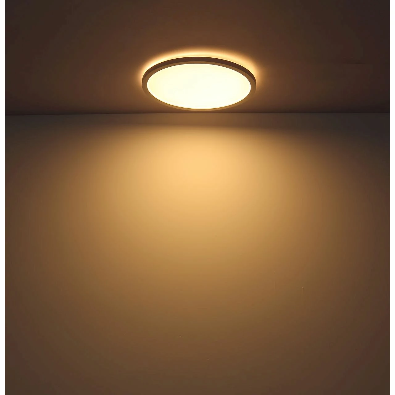 Modern, funktionell und leistungsstark. Die klassisch runde LED – Deckenleuchte aus der Serie (Ø29,4 cm) ist ein praktischer Allrounder, der vielfältig genutzt werden kann. Egal ob Flur, Wohnzimmer, Küche, Bad oder Schlafzimmer, diese Leuchte kann durch ihr dezentes Design überzeugen. Mit ihren 1600 Lumen starken und 3000K warmweißem Licht, haben Sie die perfekte Deckenleuchte für ihr Eigenheim gefunden. Außerdem verfügt die LED – Lampe über eine Memoryfunktion, ist mit der Schutzklasse IP 44 ausgestattet und somit auch feuchtigkeitsresistent und spritzwassergeschützt. Dank des geringen Stromverbrauchs, ist diese LED Lampe energiesparend und somit auch sehr umweltfreundlich.