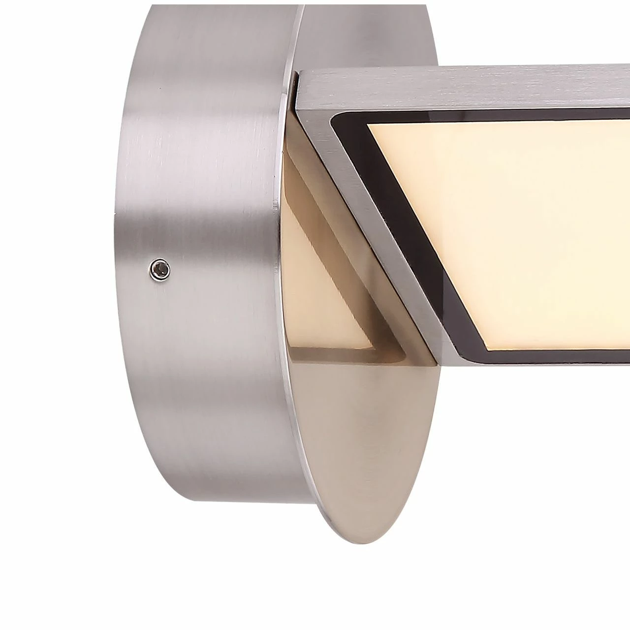 Diese Wandleuchte (Ø 115mm) aus nickel-matt beleuchtet die Wand Ihres Zuhauses mit einem wunderbaren Licht. Durch das rechteckige Lichtfenster wird das 430 Lumen starke Licht effektvoll auf die Wand gestrahlt. Das angenehm warm-weiße 3000K Licht sorgt für eine gemütliche Atmosphäre. Durch weitere Modelle dieser Serie steht Ihrer individuellen Wohnraumgestaltung nichts mehr im Wege.