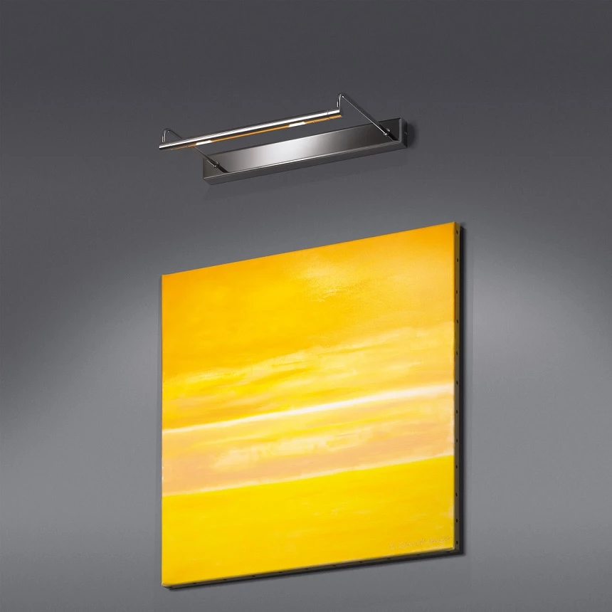 Qualitativ hochwertige Wohnraumleuchten, innovativ, zeitlos und zukunftsorientiert, sind das Sortiment dieses Herstellers. Sowohl in der Technik als auch im Design ist dies den Leuchten auf den Leib geschrieben. Hohe Funktionalität ist eine weitere Selbstverständlichkeit der Produkte. Persönliche Kunstwerke ins rechte Licht gebracht… mit dieser funktionalen LED-Bilderleuchte lenken Sie die Blicke des Betrachters unwillkürlich auf die von ihr beleuchteten Gemälde oder Fotografien. Die Objekte werden ansprechend betont und akzentuiert. Schlichtes, klassisches Design verbindet sich mit sinnvoller und effektiver Nutzung unter Verwendung modernster Lichttechnologie. Die 2 integrierten Power-LEDs erzeugen ein warmes, angenehmes Licht bei geringer Wärmeabstrahlung und niedrigem Verbrauch. Neben den energetischen Aspekten überzeugt die Bilderleuchte durch Funktionalität. Dank des drehbaren Reflektors richten Sie das Licht beliebig aus. In 4 Oberflächen