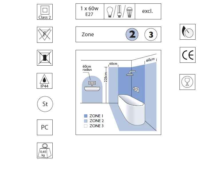 Eine Badezimmerlampe sollte selbstverständlich die entsprechende Schutzklasse besitzen, mindestens IP44 (spritzwassergeschützt).