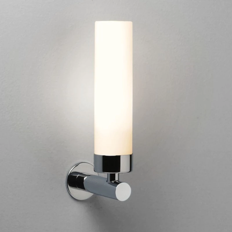 Der Glaszylinder aus mattem Opalglas begünstigt angenehme Lichtverhältnisse. Die Wandlampe wird sich wunderbar in moderne, elegante Bäder einfügen und diese blendfrei ausleuchten.