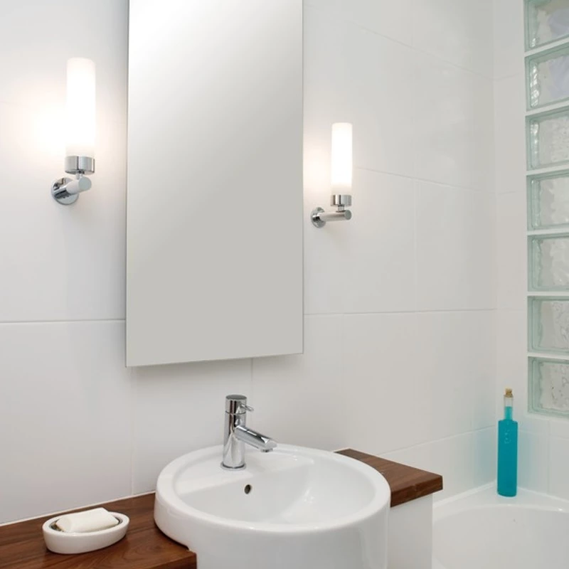 Diffuses Licht neben dem Spiegel mit der Wandleuchte Tube
