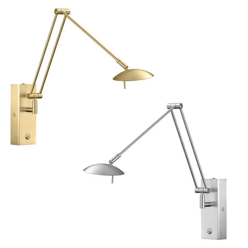 Beginnend mit einer eckigen Wandhalterung, an der sich ein Tastdimmer für eine bequeme Bedienung befindet, misst der stabile Arm zusammen mit dem runden Leuchtenkopf ganze 62cm Länge. Dieser kann durch die verschiedenen Gelenke flexibel in jede beliebige Richtung gedreht und geschwenkt werden, um die Lichtwirkung optimal zu positionieren.