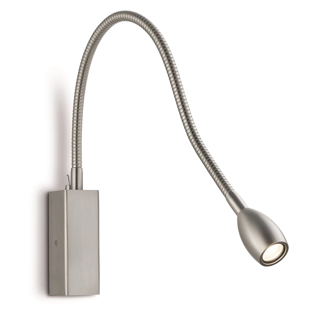 Überaus praktisch ist der biegsame Flexarm. Mit einer Gesamtlänge von 48 cm ist dieser in jeder beliebige Richtung schwenkbar. Versteckt auf der Wandhalterung hinter dem Flexschlauch befindet sich ein kleiner unauffälliger Mikroschalter zum Ein- und Ausschalten.