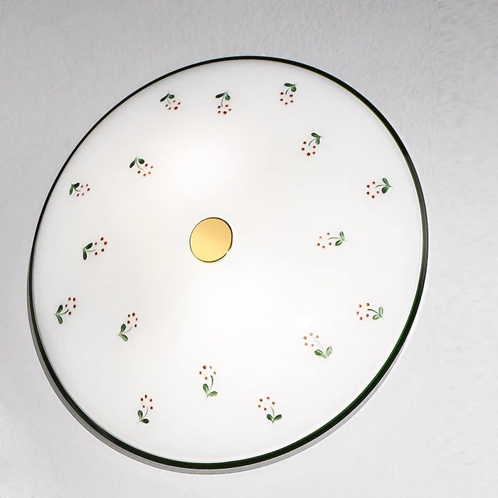 Auch in der Gastronomie sorgen diese Lichtquellen mit blendfreiem Licht für Gemütlichkeit. Die zarten Gläser werden mit einer Metallschraube in Messing befestigt und begeistern durch zierliche Blütenmalerei.