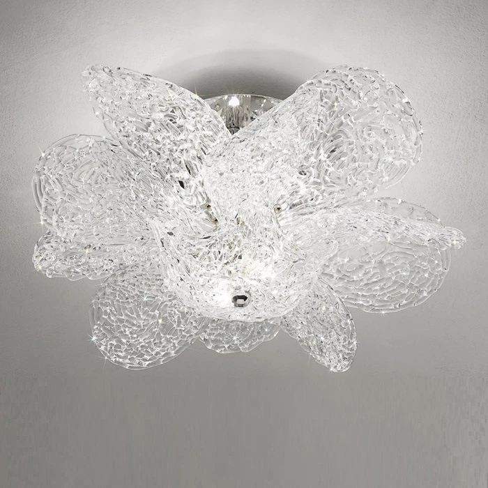 Luftigkeit einzigartig erzeugt durch handgearbeitetes Muranoglas. Kunstvoll designt verführt die Serie Naomi von Kolarz durch elegante Transparenz und geschwungene sich öffnende Formen.