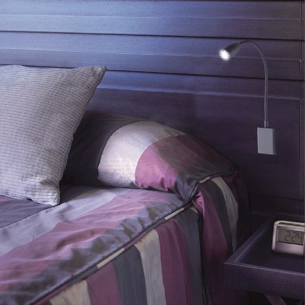 Diese LED-Leuchte befindet sich an einem Flexarm, der sich individuell verbiegen lässt. Diese Gelenkigkeit sorgt für eine optimale Lichtausrichtung zum Lesen und Arbeiten.