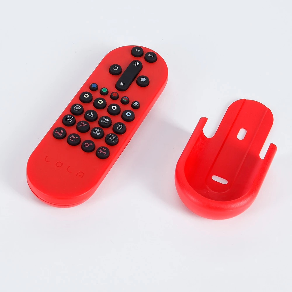 Die rote LOLA-Fernbedienung ist nach dem Einsetzen der Batterien einsatzbereit (nicht im Lieferumfang vorhanden) t und so können Sie ein Farbspiel aus einer der zwölf programmierten Lichtszenarien auswählen. Oder Sie suchen sich eine Farbe aus dem RGB-Farbmodus aus, bestimmen Sie selbst in welcher Lichtstimmung Sie sich wohlfühlen oder passen das Licht Ihrer Stimmung ganz einfach an.