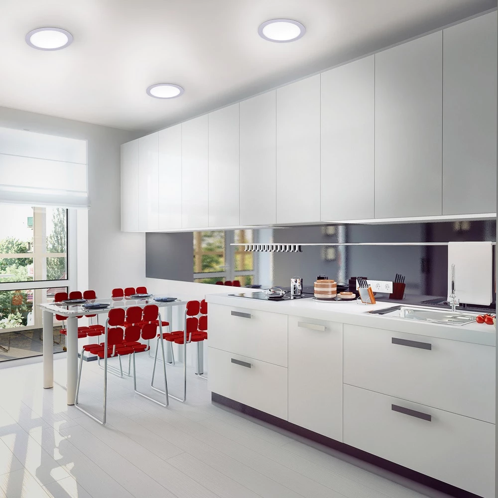 Die Deckenleuchte kann sowohl als Aufbau- oder als Einbauleuchte verwendet werden. Mit angenehmer, blendfreier Lichtverteilung ist die Leuchte eine wunderbare Grundbeleuchtung.