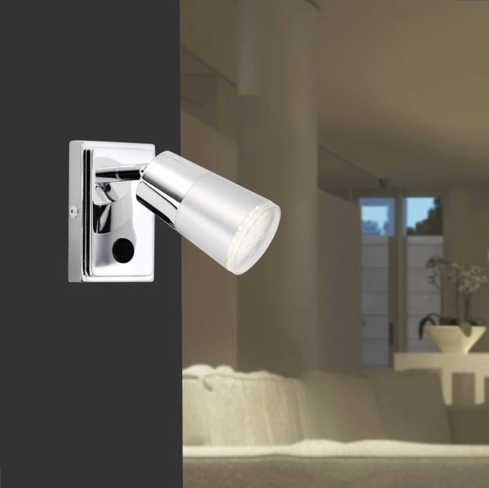 Ausgestattet mit einem Wippschalter lässt sich der kleinen Wandstrahler bequem vor Ort schalten.