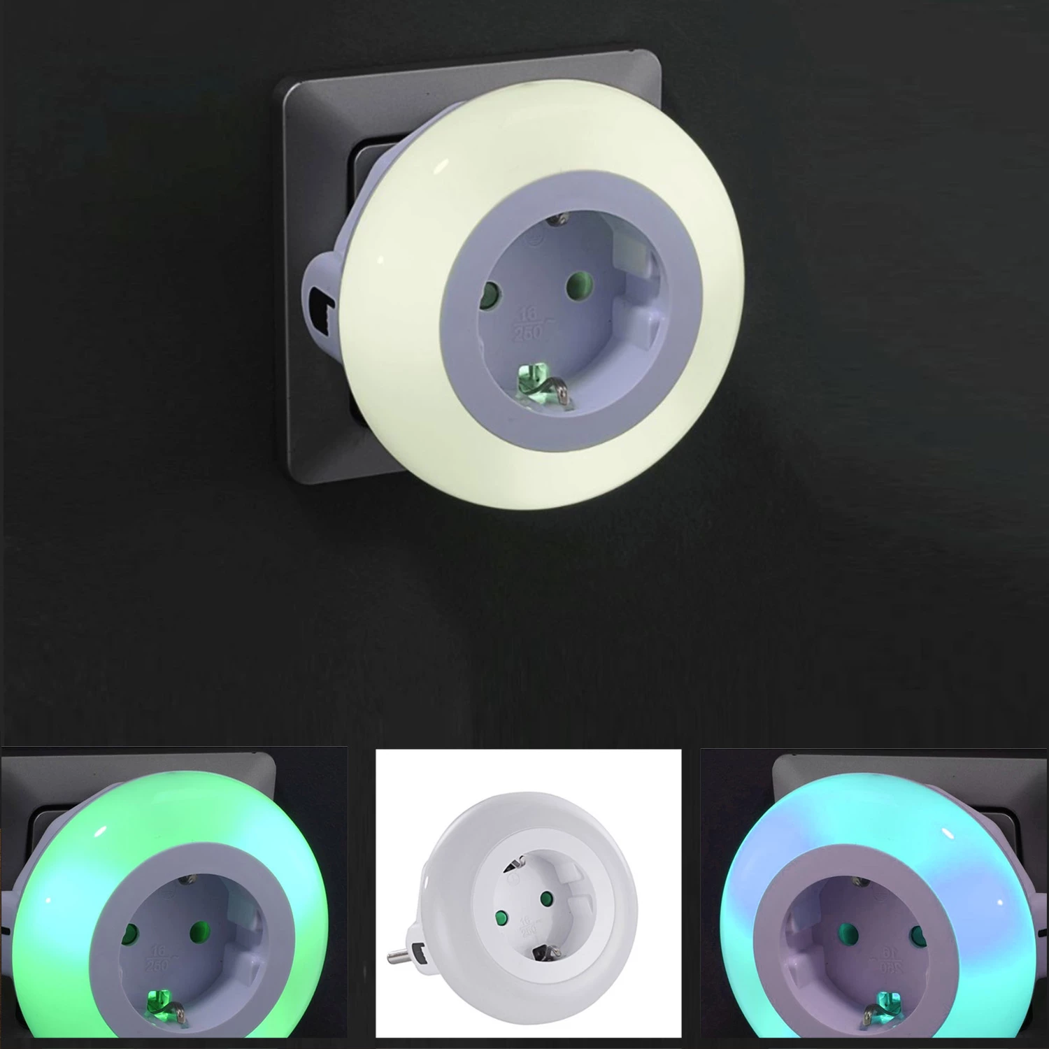 Nacht- und Orientierungslicht mit Schukosteckdose – Farbwechsel durch Touch, inkl Dämmerungsssensor