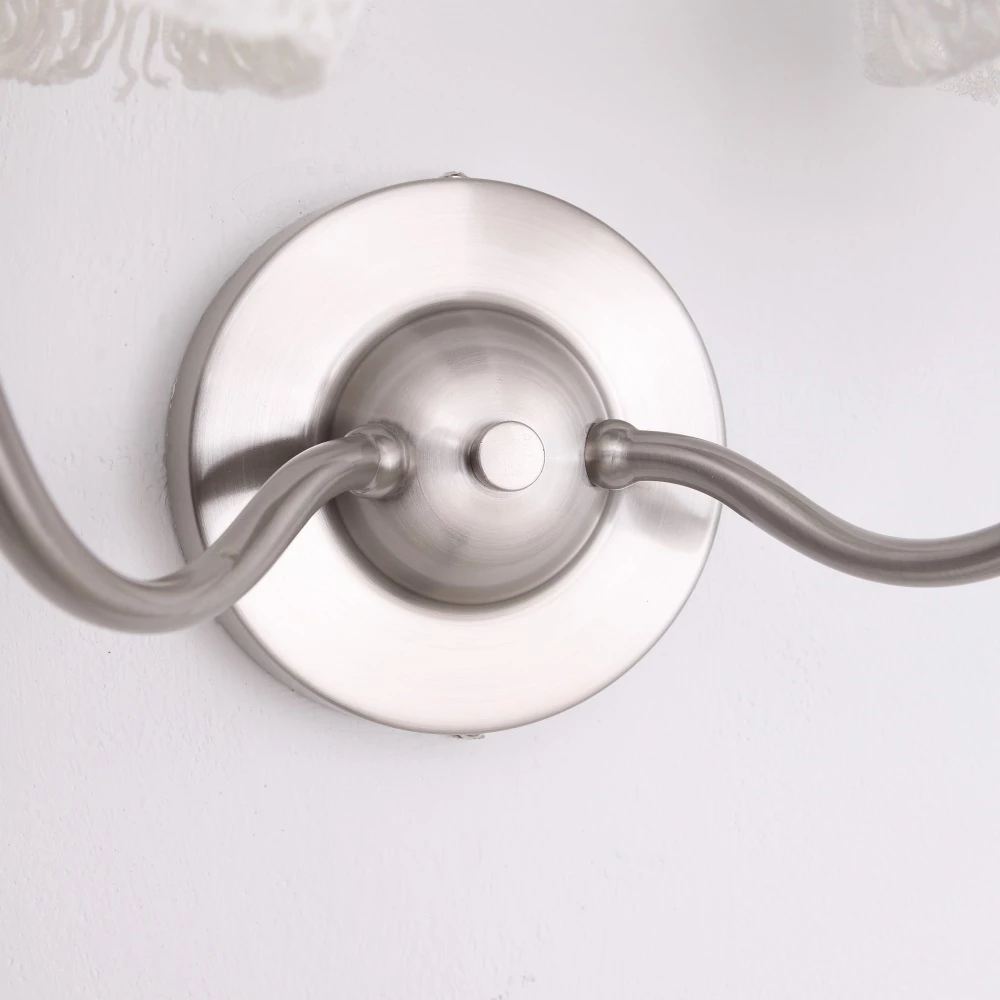 Auffällige Bommel zieren die Lampenschirme dieser 2-flammigen Wandleuchte, die dadurch zu einem dekorativen Lichtspender wird. Auf einer Nickel-matten Wandhalterung platziert, kann die Wandleuchte sowohl in modernen als auch in klassischen Einrichtungen integriert werden.