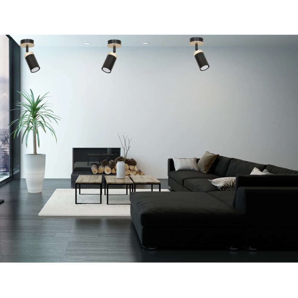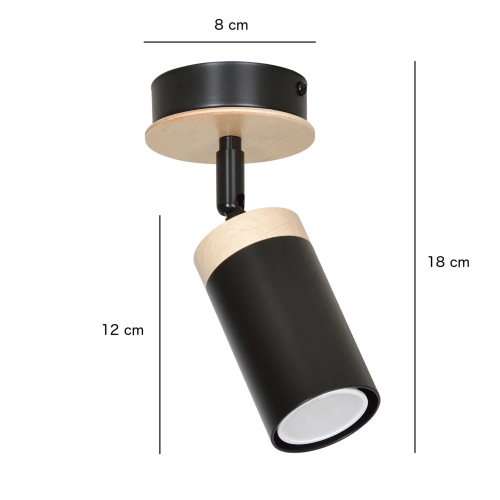 1-flammiger Deckenstrahler in schwarz-holzfarbig