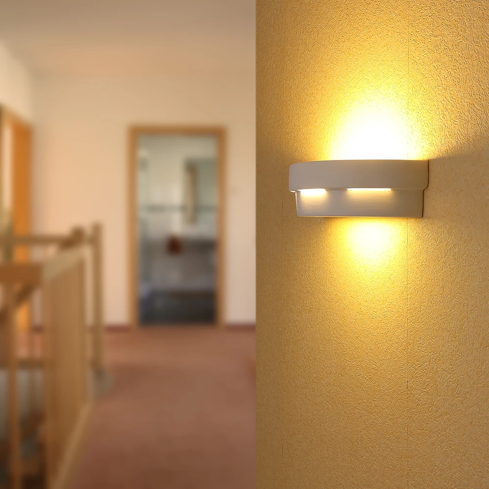 Mit ihrem indirekten Licht erzeugt die Keramikwandleuchte Helios eine weiche und unaufdringliche Beleuchtung.