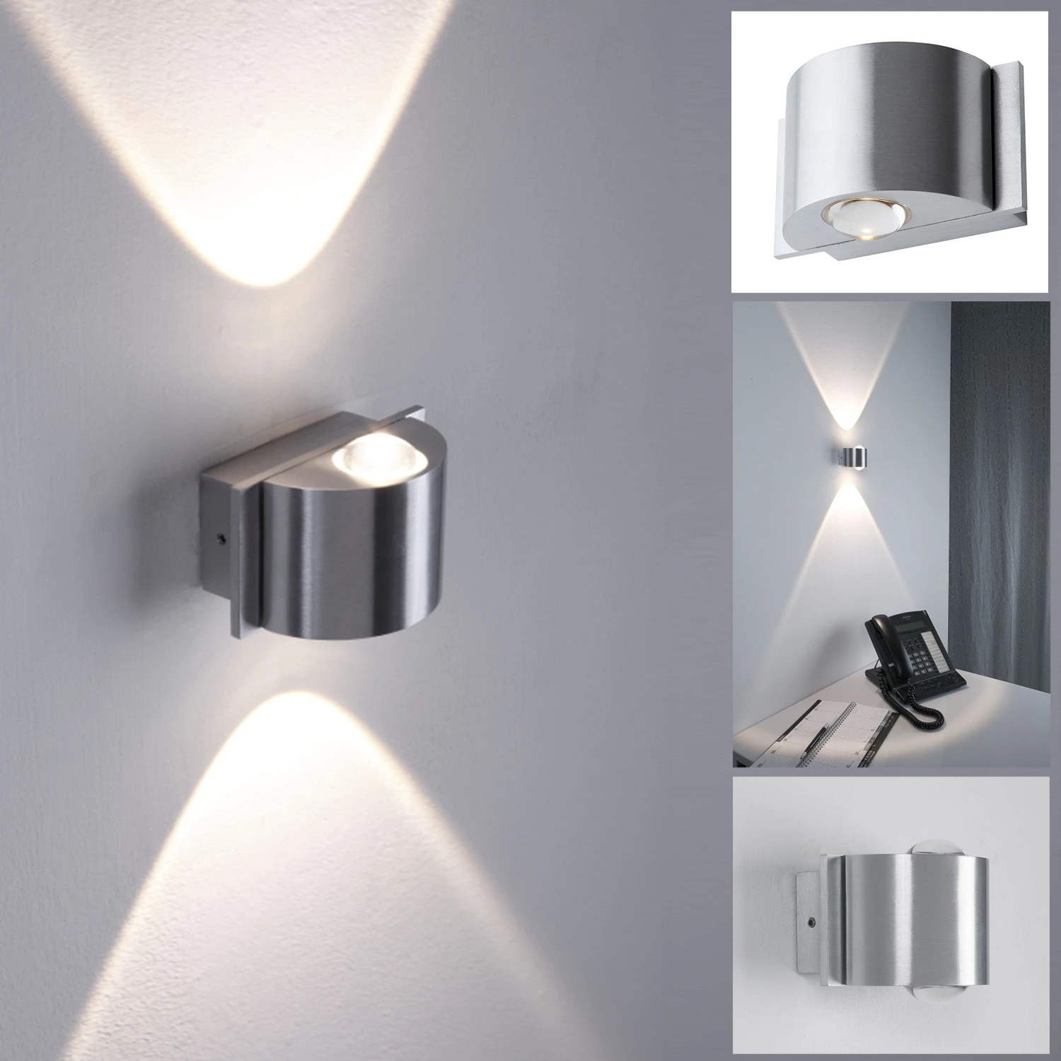 Das durch die klaren Linsen gebündelte Licht zeichnet in klar umrissenen Kegeln stimmungsvolle Lichteffekte. Aus robustem Aluminium fügt sich die Wandlampe attraktiv in moderne Architekturstile und begeistert als Akzentlicht.