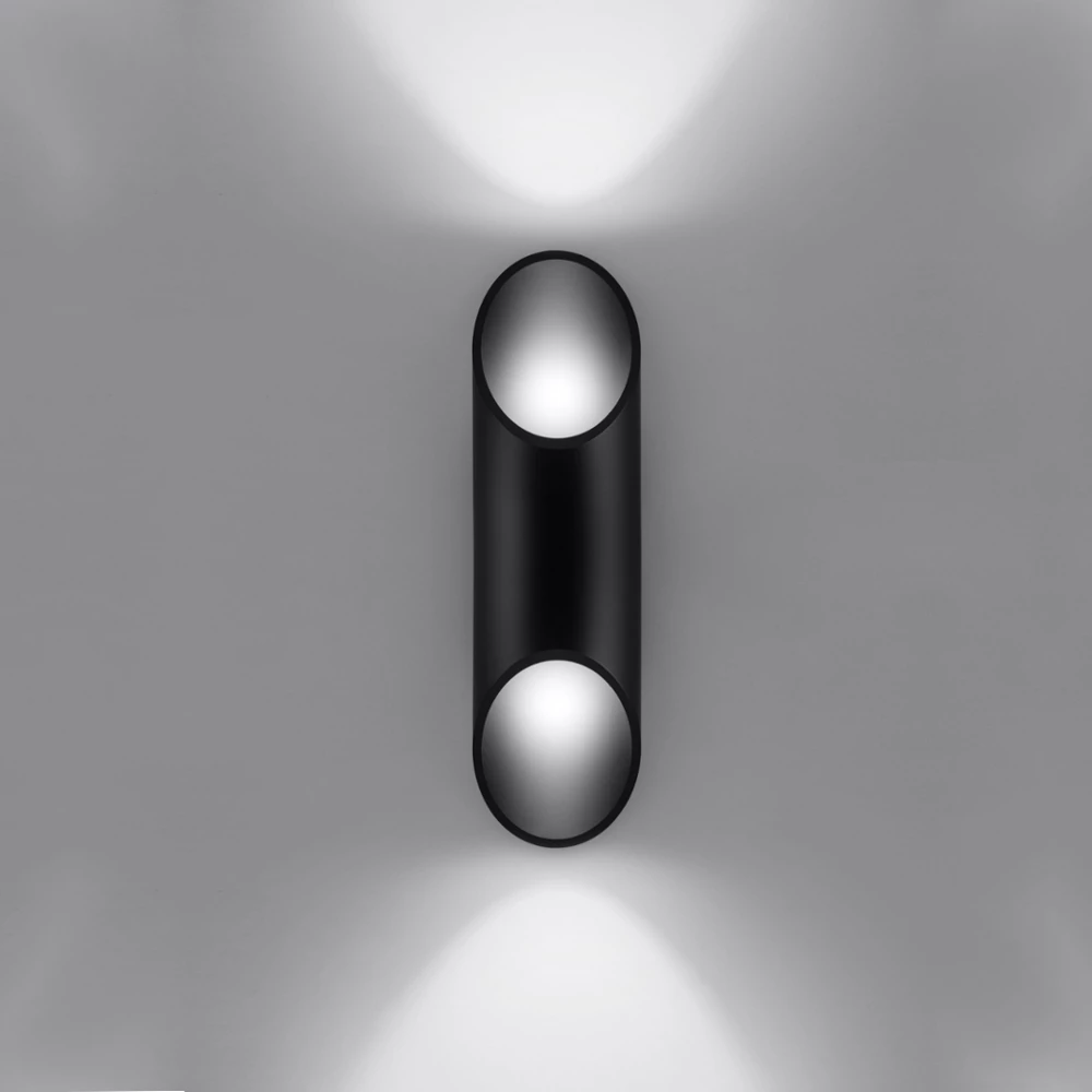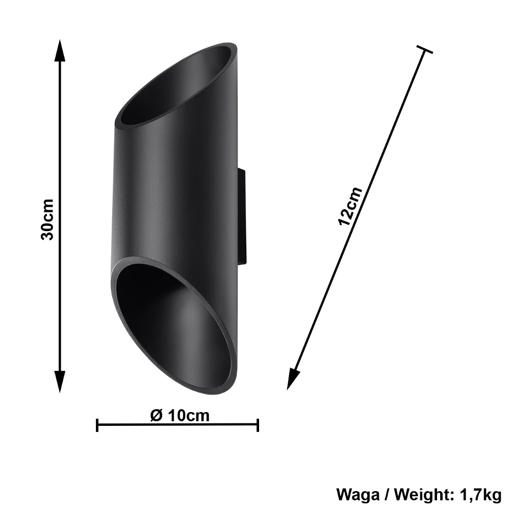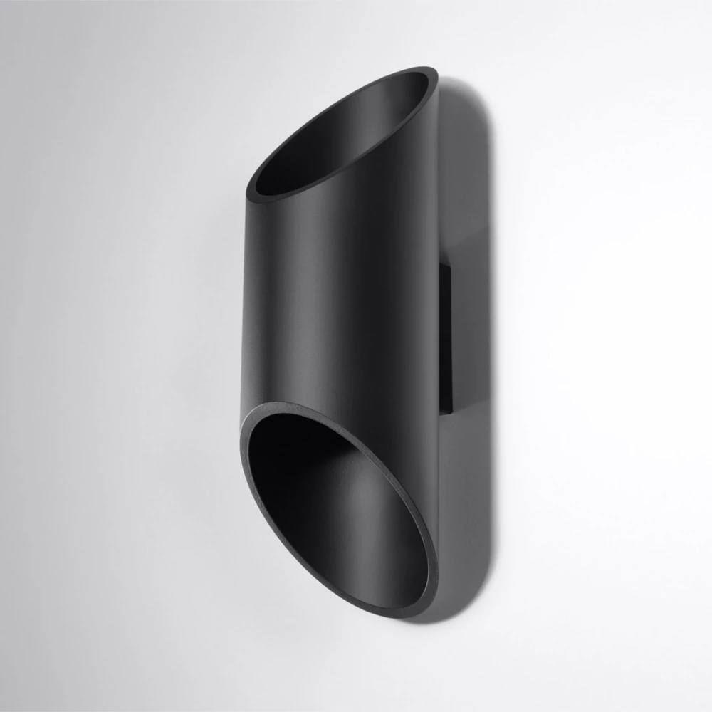 Die Wandlampe besteht aus Aluminium und wurde in schwarz lackiert. Mit ihrer schlanken Zylinderform und der abgeschrägten Öffnung wird ein modernes Design perfekt unterstrichen.