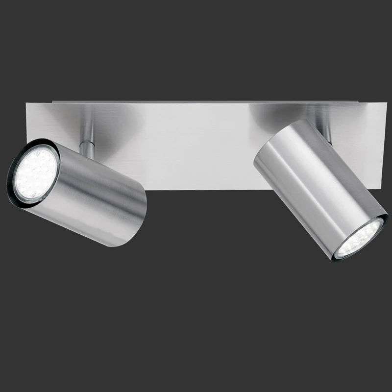 Moderner Wand- oder Deckenstrahler aus Metall mit schwenkbaren Schirmen – 2-flammig – Nickel-matt