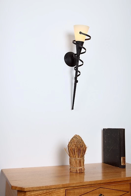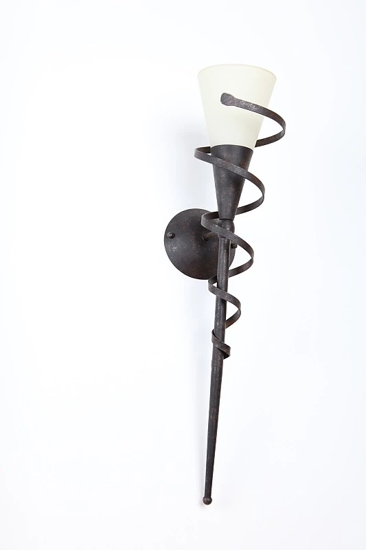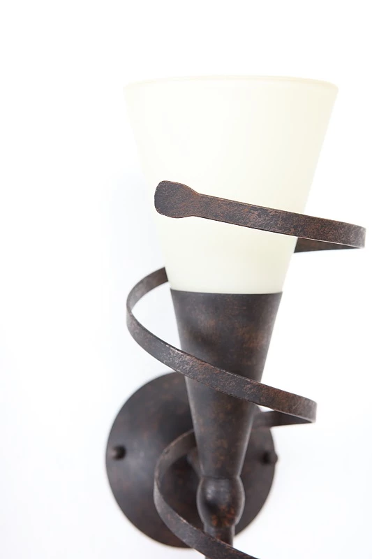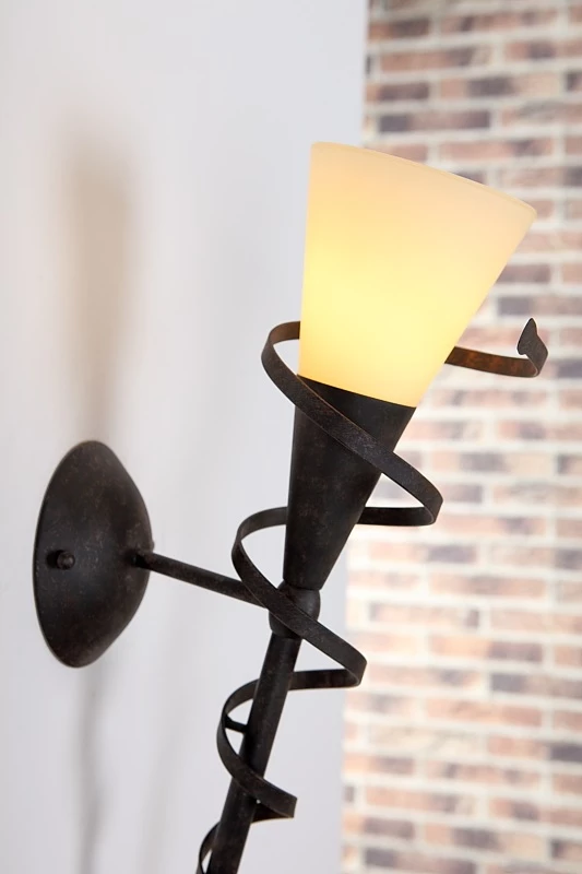 LHG Spiral Wandfackel in rost-braun, Wandleuchte, romantische Fackelleuchte mit cremefarbigem für stimmungsvolles Licht, gesandeten Glas (Scavoglas), 57 cm hoch