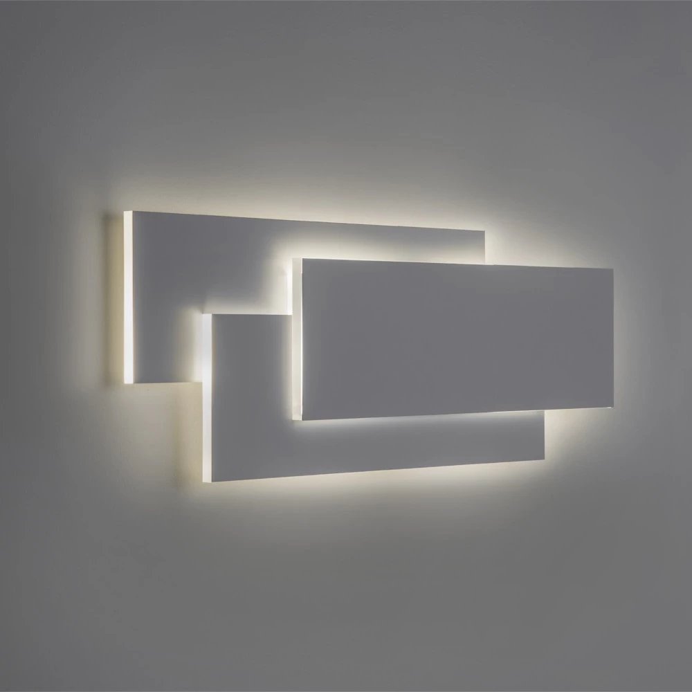 Auf den ersten Blick wirkt die Leuchte schlicht, aber dennoch kreativ gestaltet. Die Leuchte verfügt über drei Rechtecke, die übereinander versetzt ein schönes Bild ergeben und auch beleuchtete eine wirkungsvolle Atmosphäre ergibt.