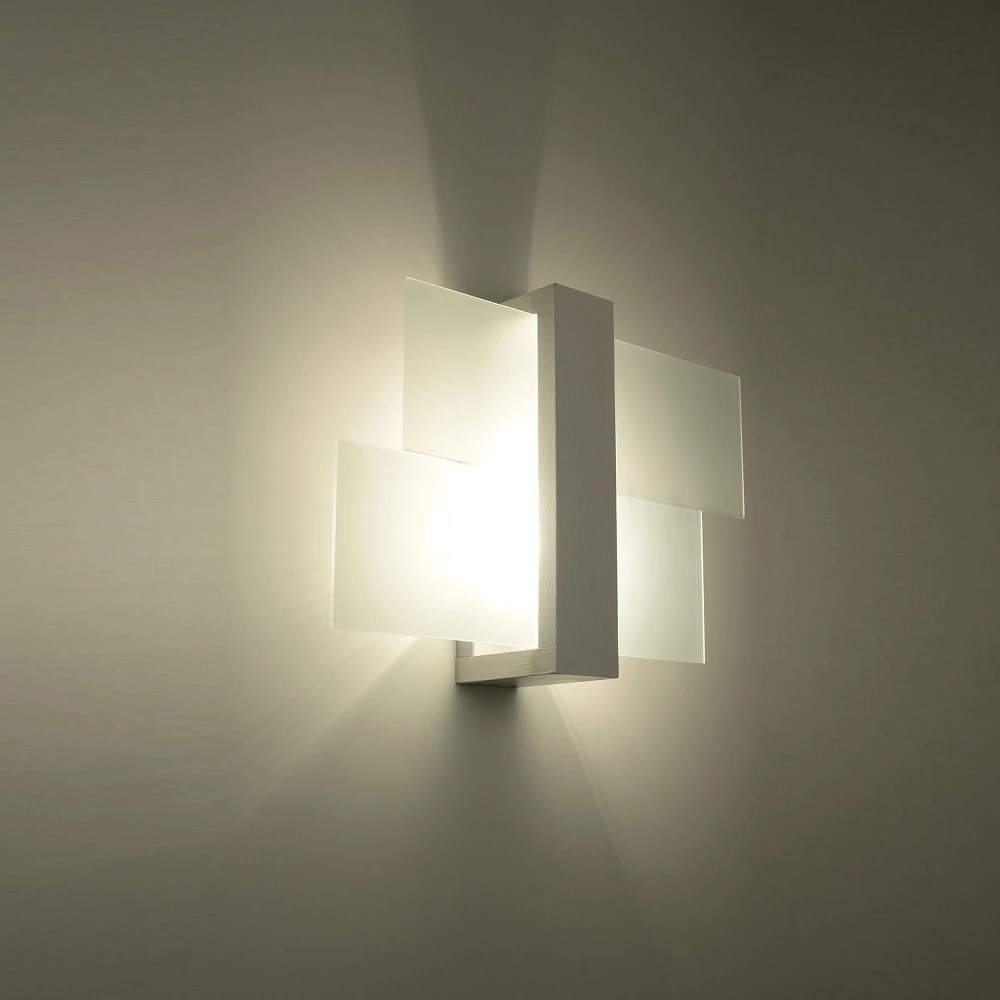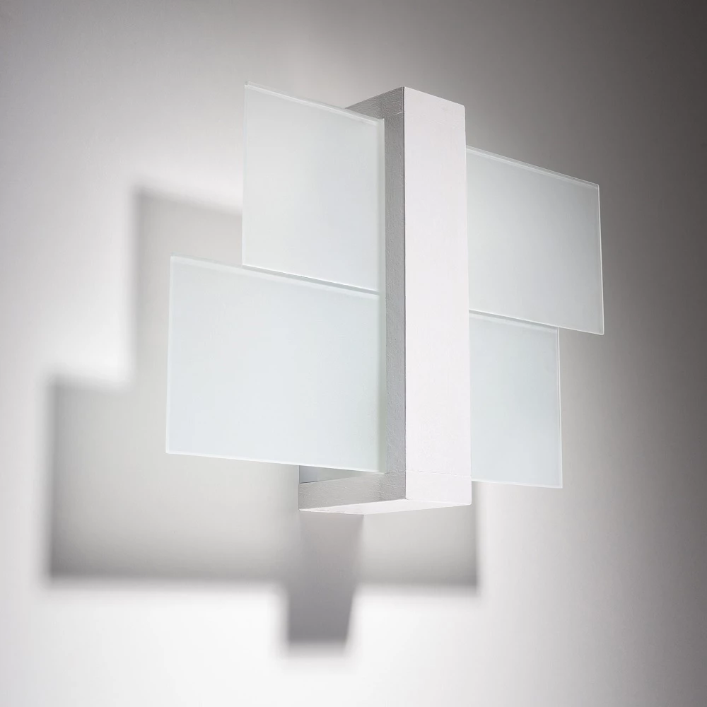 Hergestellt ist die Wandlampe aus weißem Holz und satiniertem Glas. Wunderbar hamoniert das Design mit verschiedenen Einrichtungsstilen.