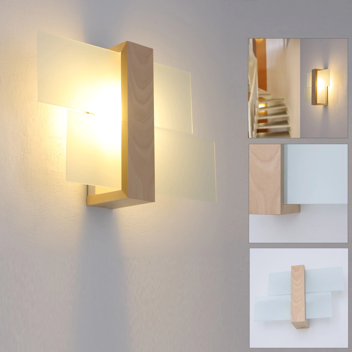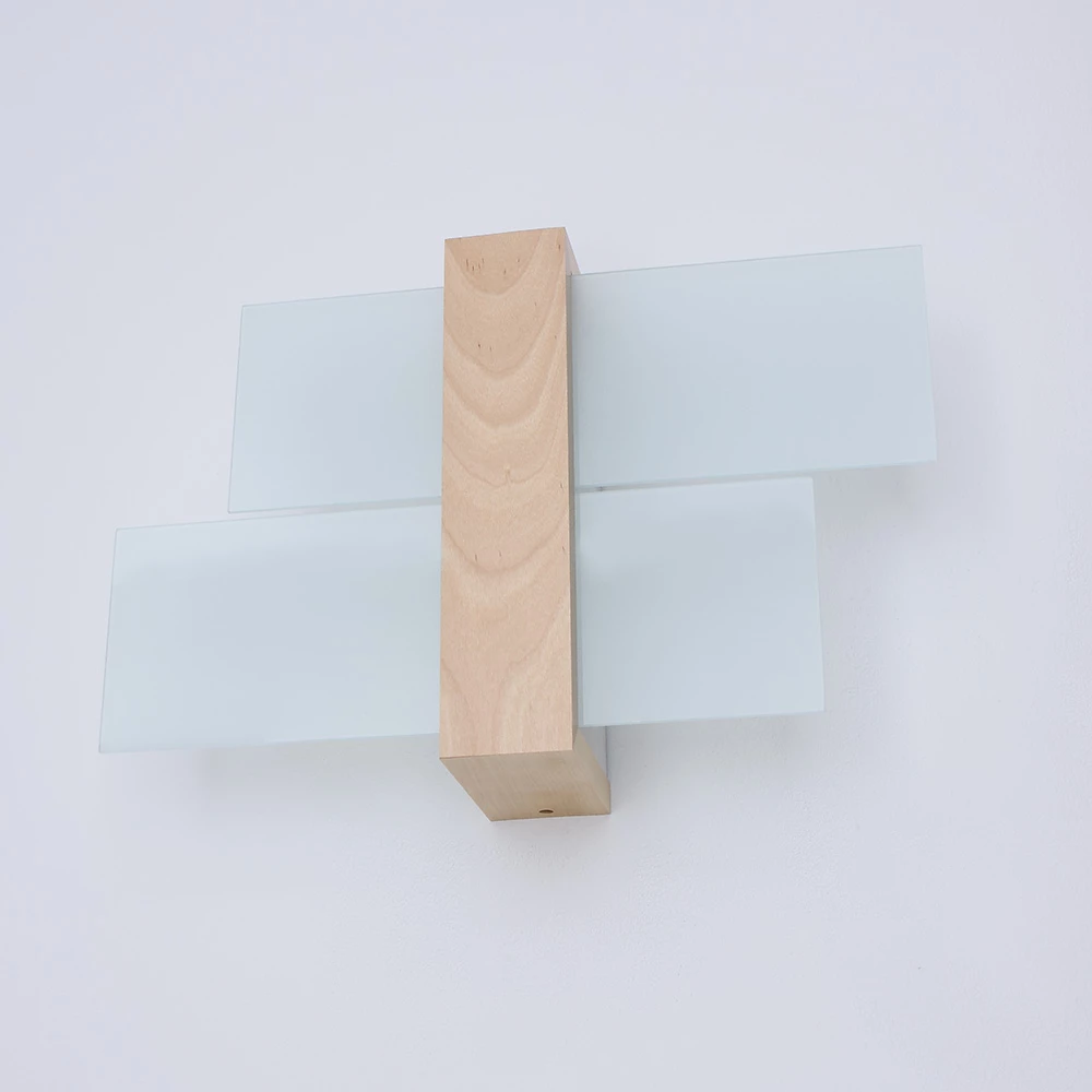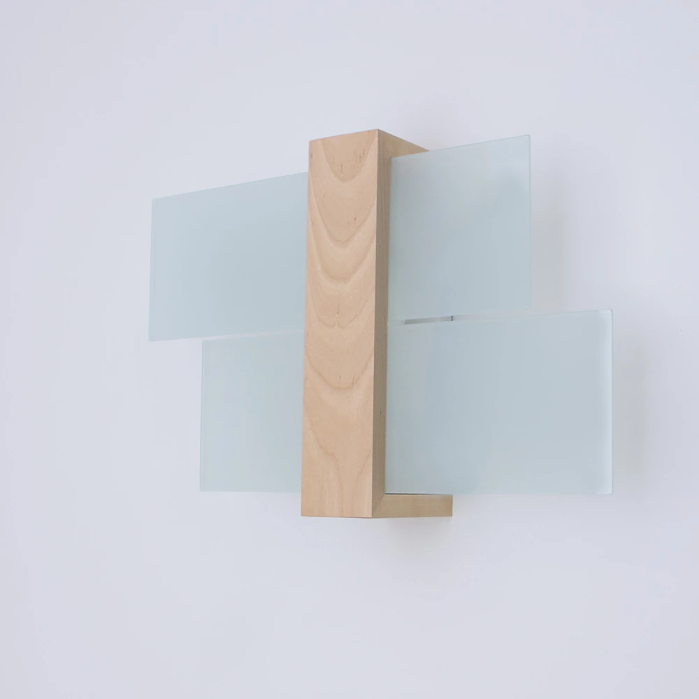 Wandleuchte Feniks 1 in natural – Glas und naturfarbenes Holz ergeben eine tolle Kombination