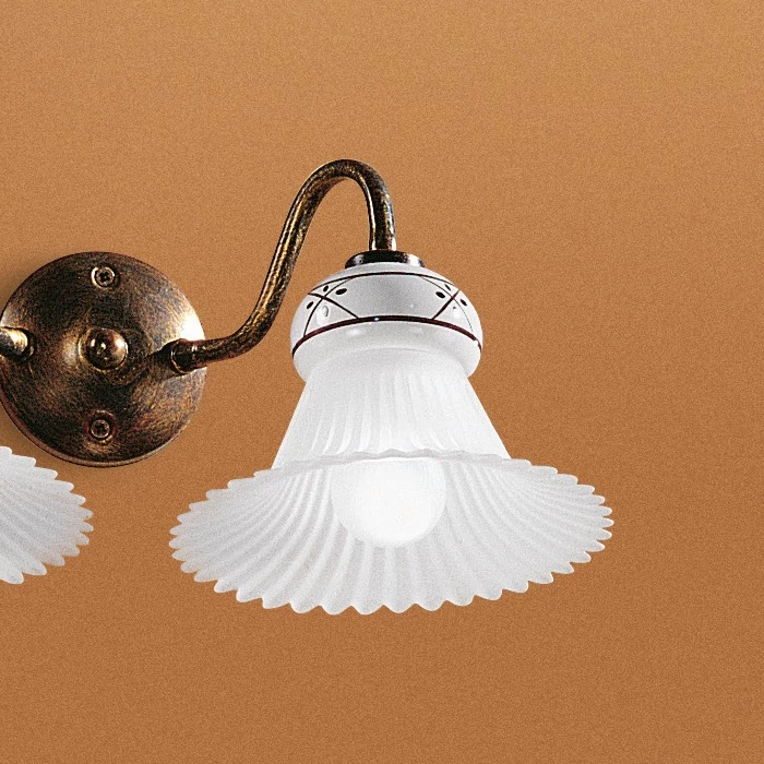 Diese stilvolle geschwungene Wandleuchte verzückt mit bezaubernden Kleinigkeiten. So ist das weiße Keramik über dem satinierten Leuchtenglas mit einem feinen Dekor in Braun verziert worden. Der gebogene Leuchtenarm vermittelt Romantik und Verspieltheit, die perfekt mit dem exklusiven Landhausstil oder dem klassischen Wohnstil harmoniert. Die satinierten Gläser sorgen für einen wohnlichen Lichtschein und ermöglichen angenehmes Licht zum Lesen. Die Leuchte stammt aus einer Leuchtenserie. Somit können Sie die Leuchten für den gesamten Raum aufeinander abstimmen.