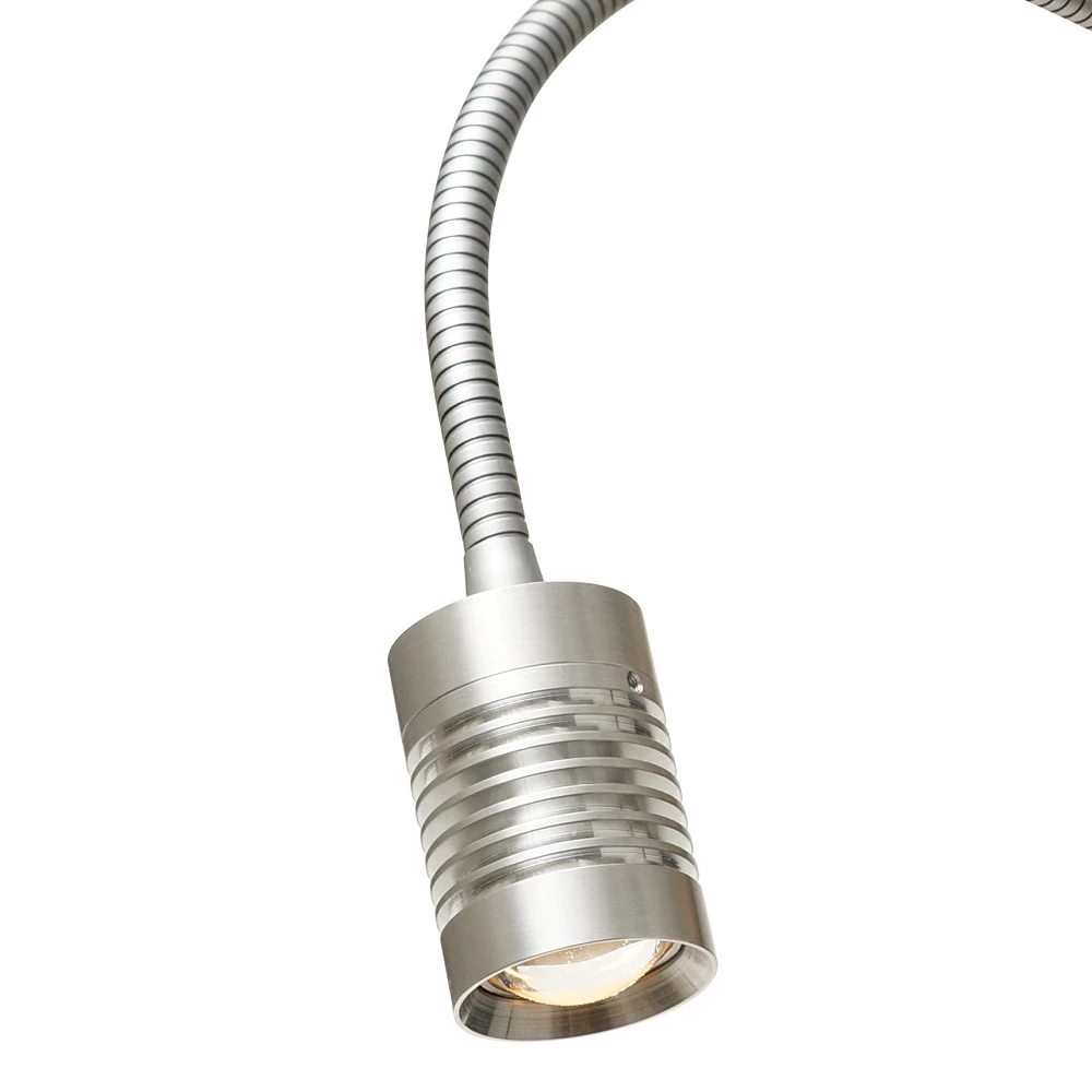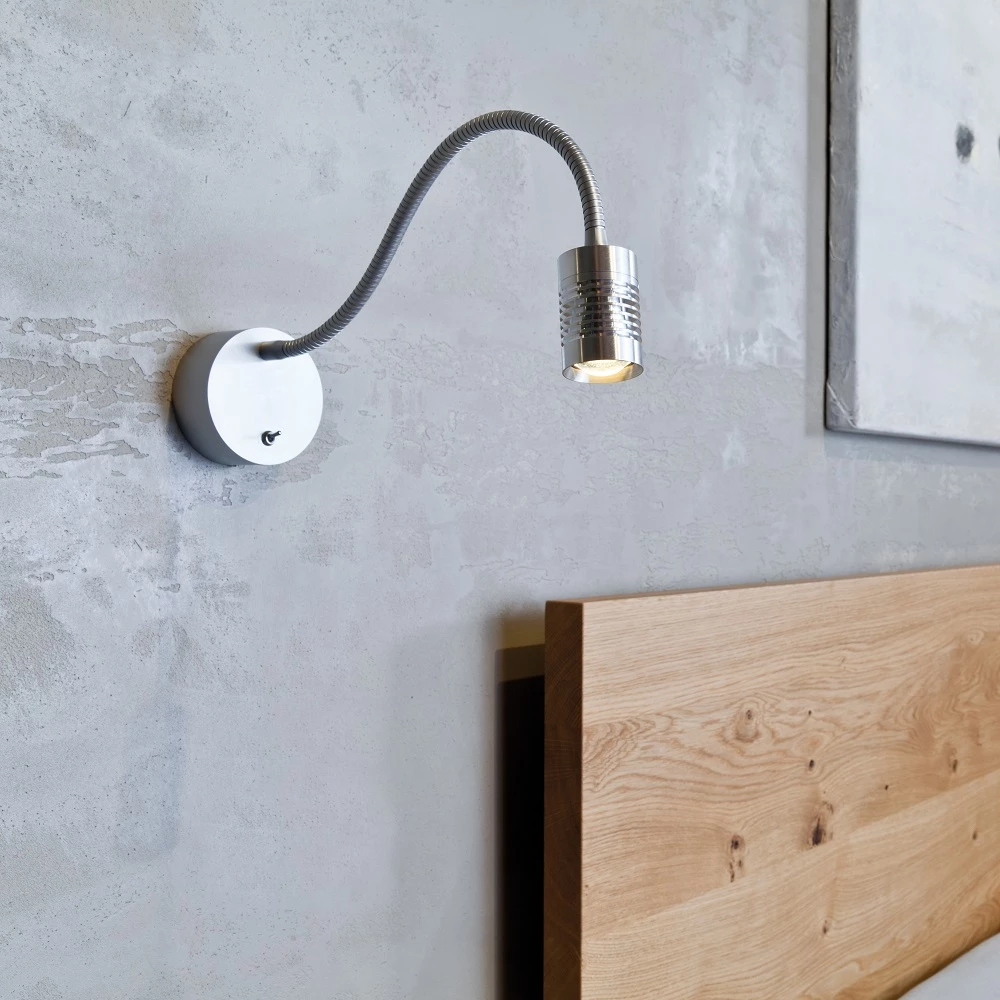 Der Gelenkarm hat eine Gesamtlänge von 40cm und lässt sich individuell verbiegen. Begeistern wird diese Lichtquelle als Leseleuchte am Bett oder am Schreibtisch. Ein Kipp-Schalter an der Wandbefestigung ermöglicht eine einfache Bedienung. Optional ist die Leuchte auch mit einer 1,5m Steckerzuleitung bestellbar.