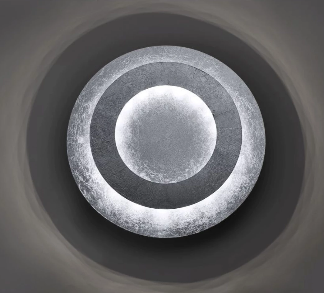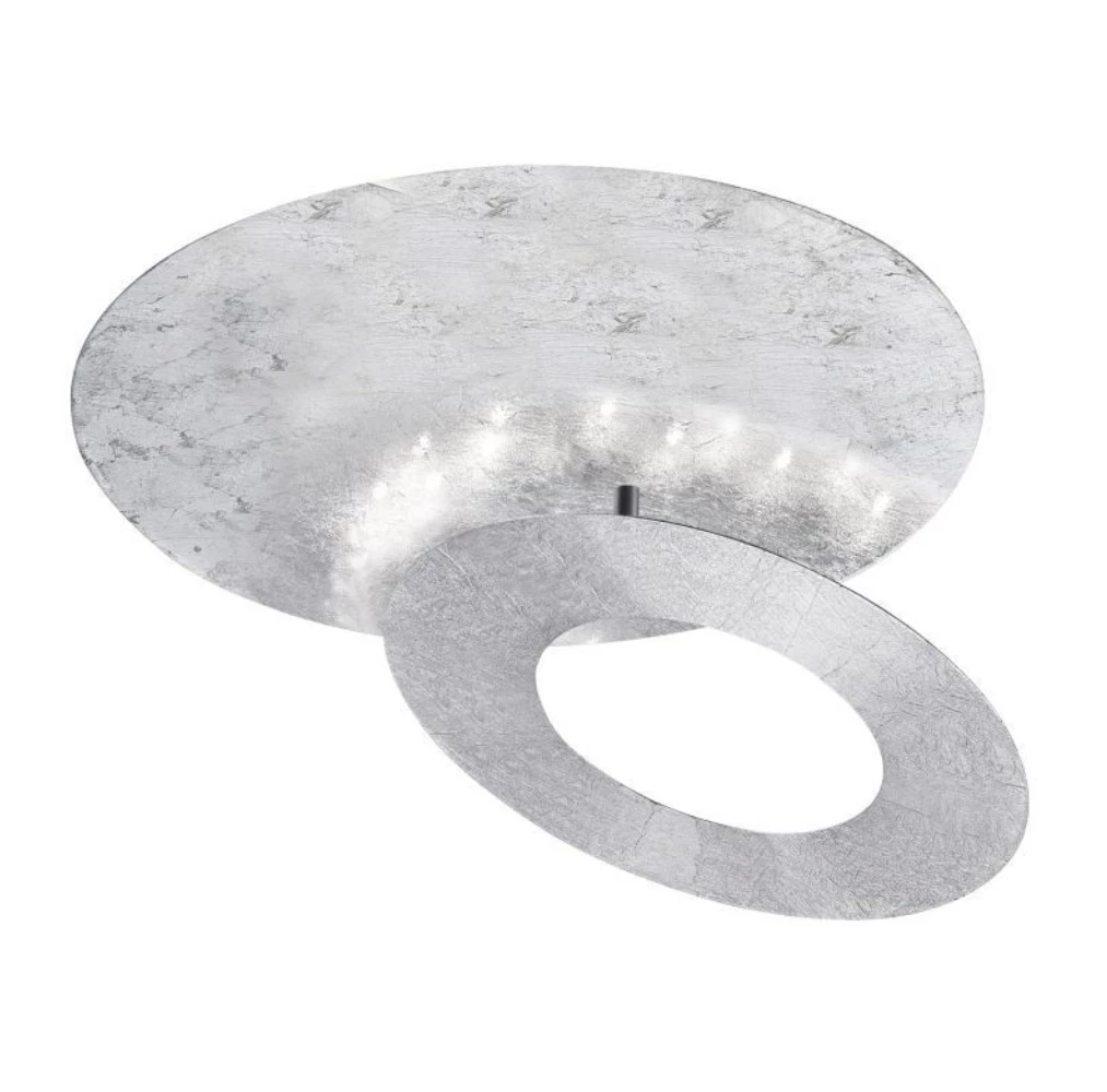 Die Wandleuchte ist aus Stahl gefertigt und ist mit blattgold- oder blattsilberfarbiger Lackierung erhältlich.