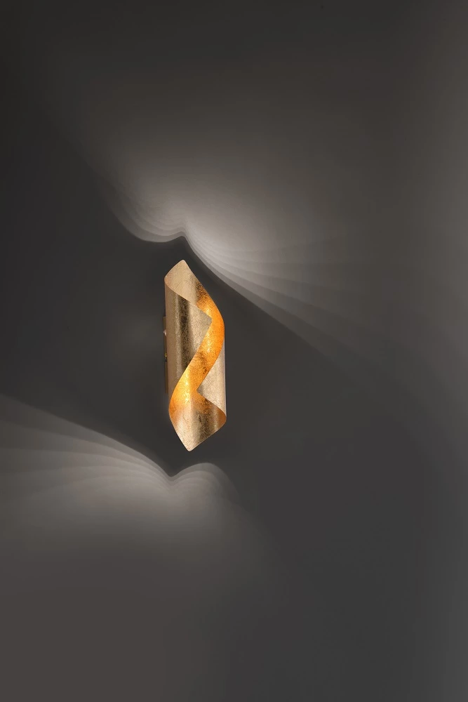 Die interessante, gebogene Form und die Blattgold- bzw. Blattsilberoptik der Oberfläche lässt sie zu einem Hingucker in Ihren vier Wänden werden. Weiche Formen und die edle Oberfläche tauchen Flure und Eingangs- bereiche in warmweißen Lichtschimmer. Auch in der Hotelerie, in Bars und Restaurants ist Nevi eine tolle Beleuchtungslösung.