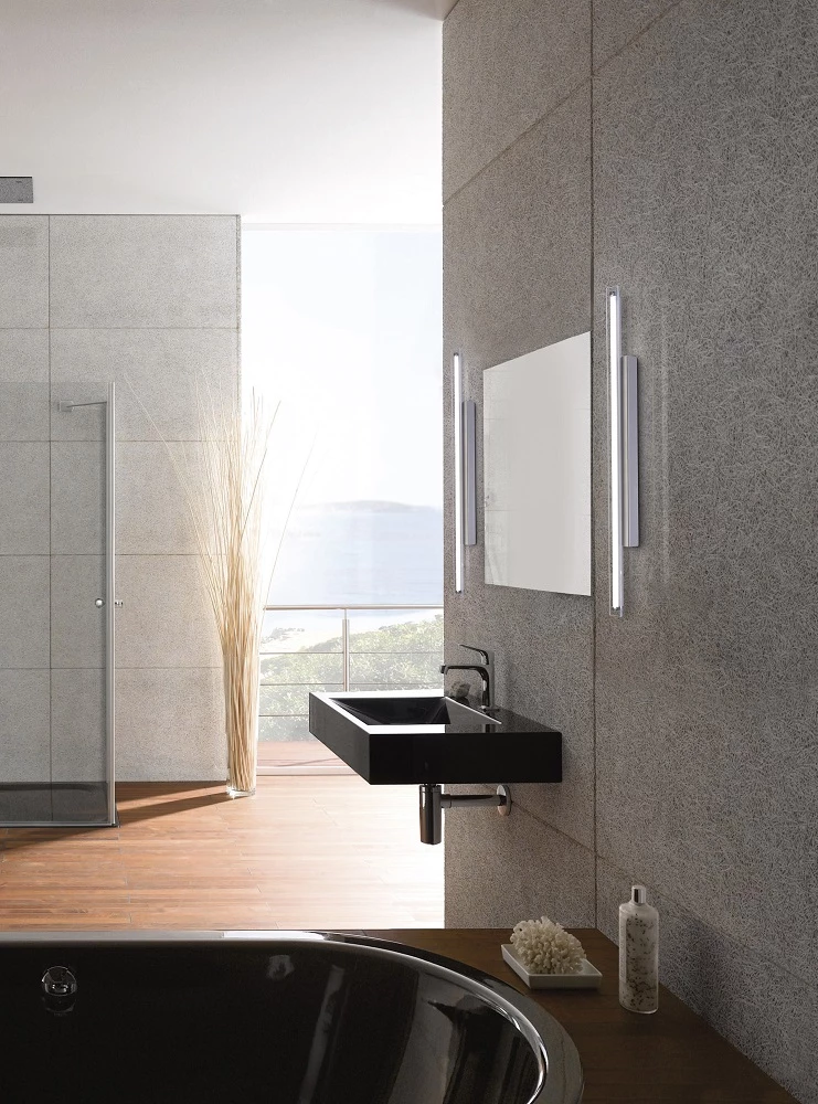 Durch die Schutzart IP44 ist sie Spritzwasser geschützt und hervorragend für die Verwendung im Badezimmer geeignet. Links und rechts neben dem Spiegel montiert, ist sie sowohl dekorativ als auch perfekt, um Ihr Spiegelbild genauer zu beleuchten.