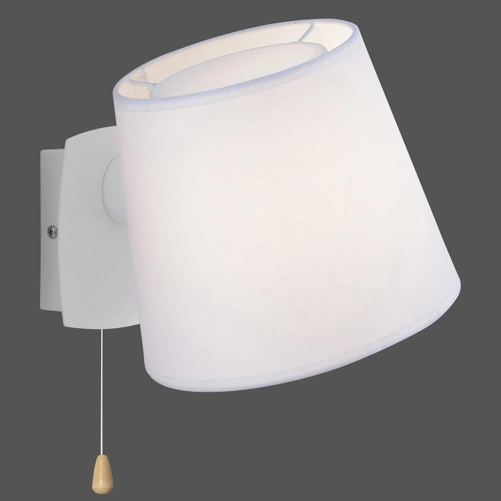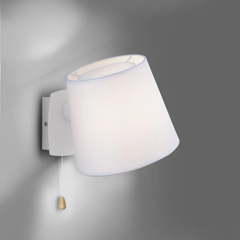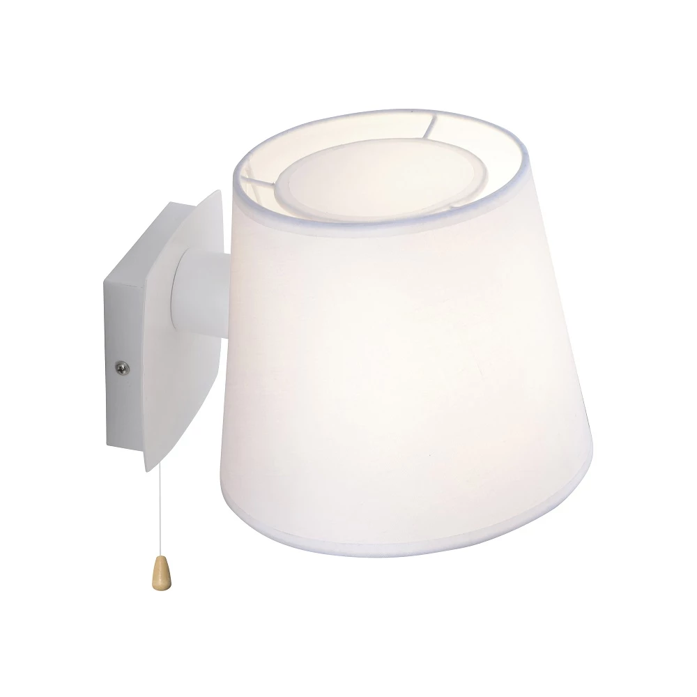 Die Wandleuchte begeistert mit ihrem modernen und dennoch schlichten Design. Der Lampenschirm aus Stoff ist schwenkbar, sodass Sie den Lichtaustritt nach Bedarf ausrichten können. Durch den Schirm gibt die Wandlampe angenehmes, blendfreies Licht ab. Mit einem Zugschalter lässt sich die Leuchte ganz einfach ein- und ausschalten.
