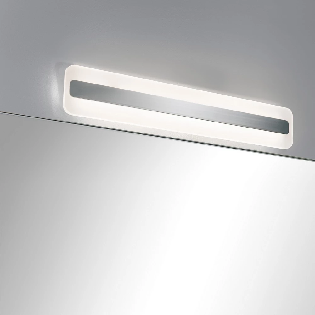 Eine schattenfreie Ausleuchtung und die Linienführung machen den Unterschied bei dieser schlanke Spiegelleuchte aus. Die blendfreie Leuchte links und rechts neben dem Spiegel montiert, sorgt dafür, dass keine unerwünschten Schatten unter Augen, Nase oder Kinn entstehen. Dank Spritzwasserschutz kann die Badleuchte direkt über oder neben einem Spiegel montiert werden. Langlebige LED-Leuchtmittel, fest verbaut und gleichmäßig über den gesamten Leuchtkörper verteilt, garantieren für eine exzellente Ausleuchtung.