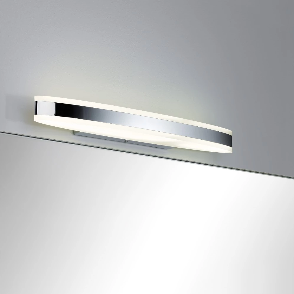 Der verchromte Blendschutz hat eine positive Wirkung auf die Optik der Badleuchte . Die hochwertige Qualität und die fest verbauten LEDs überzeugen, das formschöne Design passt hervorragend in moderne Bäder.