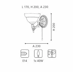 Fischer & Honsel Wandleuchte rost antik, Glas champagner, 1-flammig E14, Zugschalter